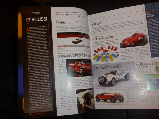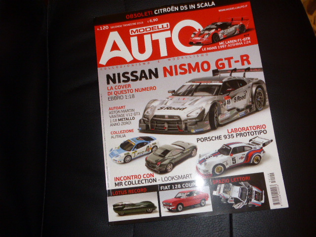 Veniamo dunque a questo numero 120, che come \”cover car\” propone un\’insolita Nismo Nissan GT-R prodotta da Ebbro in 1:18. E dopo l\’ubriacatura a base di amaro tedesco nel numero 119, Gian Luca Pizzi mostra un secondo filone della sua collezione, dedicato alle livree Alitalia; testo di Umberto Cattani e foto di Gianfranco Berto. Il personaggio del 120 è invece Egidio Reali, gran patron dei marchi MR Collection e Looksmart, che si racconta nel modo che gli è più consono, sul filo della provocazione e di un sano paradosso. Sano perché prima di tutto Reali è un imprenditore e conosce bene la differenza fra normalità e pazzia! La parte tecnica, a cura di Corrado Crivellaro, è dedicata ad un\’elaborazione su base Starter di una Porsche 935 Gr.5, di cui è stata ricavata una versione vista nel corso dei test pre-stagionali del 1976; il montaggio del kit in plastica, stavolta la McLaren F1-GTR Le Mans 1997 di Aoshima in 1:24 è affidato come sempre al preciso Fabio Pastres. Molte le recensioni, fra le quali segnalerei la Lotus XI Record Car Monza 1956 di BoS-Models in scala 1:18. Il capitolo degli obsoleti è dedicato alla mitica DS, le cui riproduzioni nelle varie scale, dai tempi della Dinky fino ai giorni nostri, sono passate in rassegna da Bruno Boracco.
