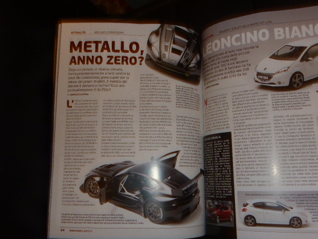 Lo spazio dedicato al modello speciale recensisce la Porsche Carrera RSR di Make Up, un successo e una delusione al tempo stesso. Ho lasciato volutamente alla fine un argomento-chiave di questo numero, ossia le considerazioni ufficiali di AutoArt commentate da Umberto Cattani su un argomento che è ormai di dominio comune, vale a dire i fenomeni di reazione fra verniciatura e scocche in zamac, che stanno creando più di un patema ai collezionisti che hanno dato fiducia in un passato recente a marchi che evidentemente non se lo meritavano. A questo argomento si ricollega anche l\’editoriale di questo numero, che nasce come una provocazione. E a questo tema si richiama pure la recensione di Cattani al primo modello di AutoArt in plastica ABS, l\’Aston Martin Vantage V12 GT3 in 1:18, concepita proprio per scongiurare i cronici problemi di compatibilità delle verniciature col supporto metallico. Se proprio non c\’è modo di isolare lo strato di smalto dalla zamac grezza conviene cercare alternative. In passato, magari non per questa ragione specifica, il tentativo era stato già fatto da case come Herpa, senza che peraltro l\’iniziativa fosse ripagato da un successo proporzionato agli investimenti. Vedremo stavolta se, magari convinti dalla prospettiva di mettere in collezione un modello più resistente agli attacchi del tempo, gli appassionati risponderanno in modo consono alle aspettative di AutoArt.
