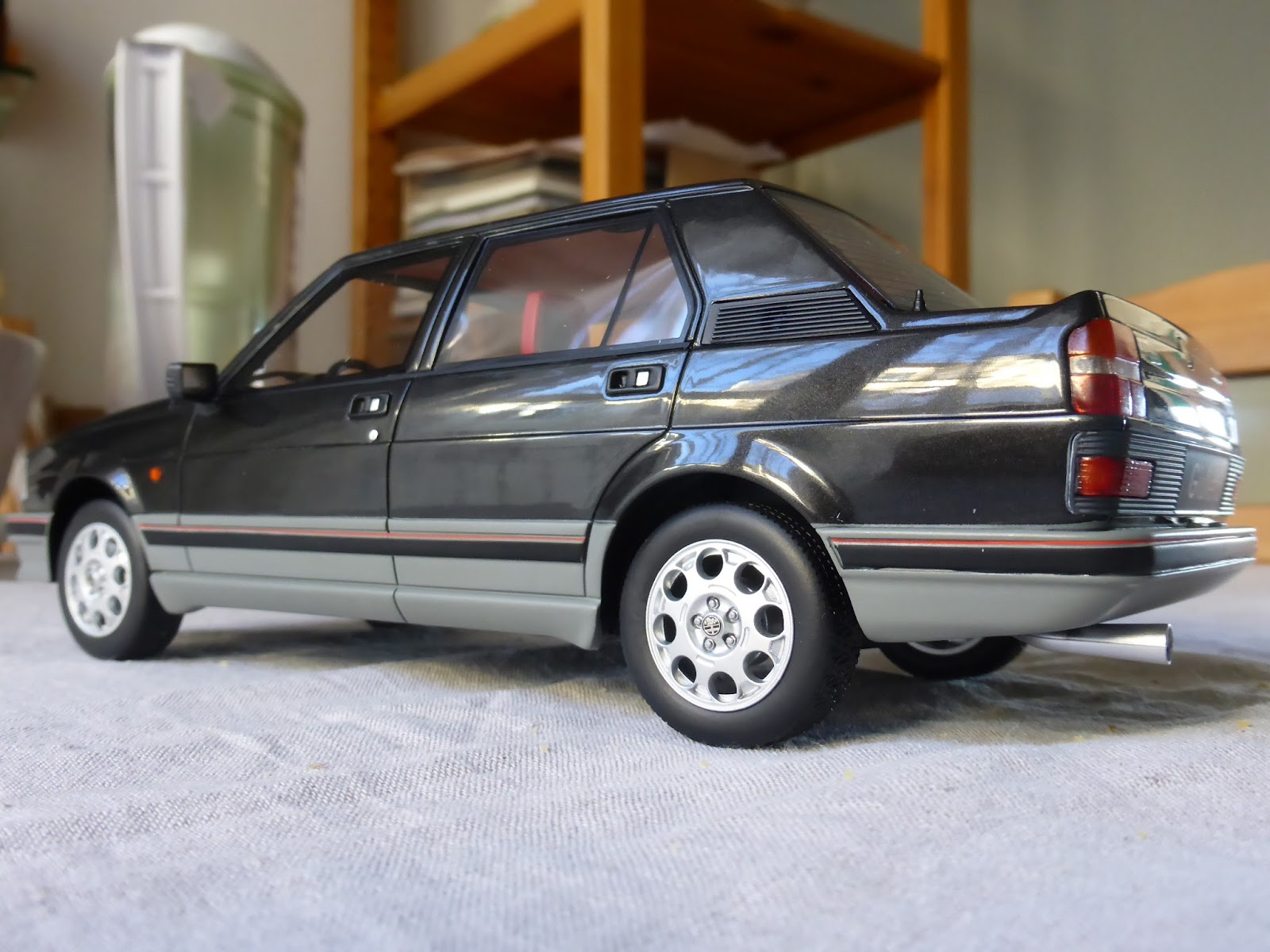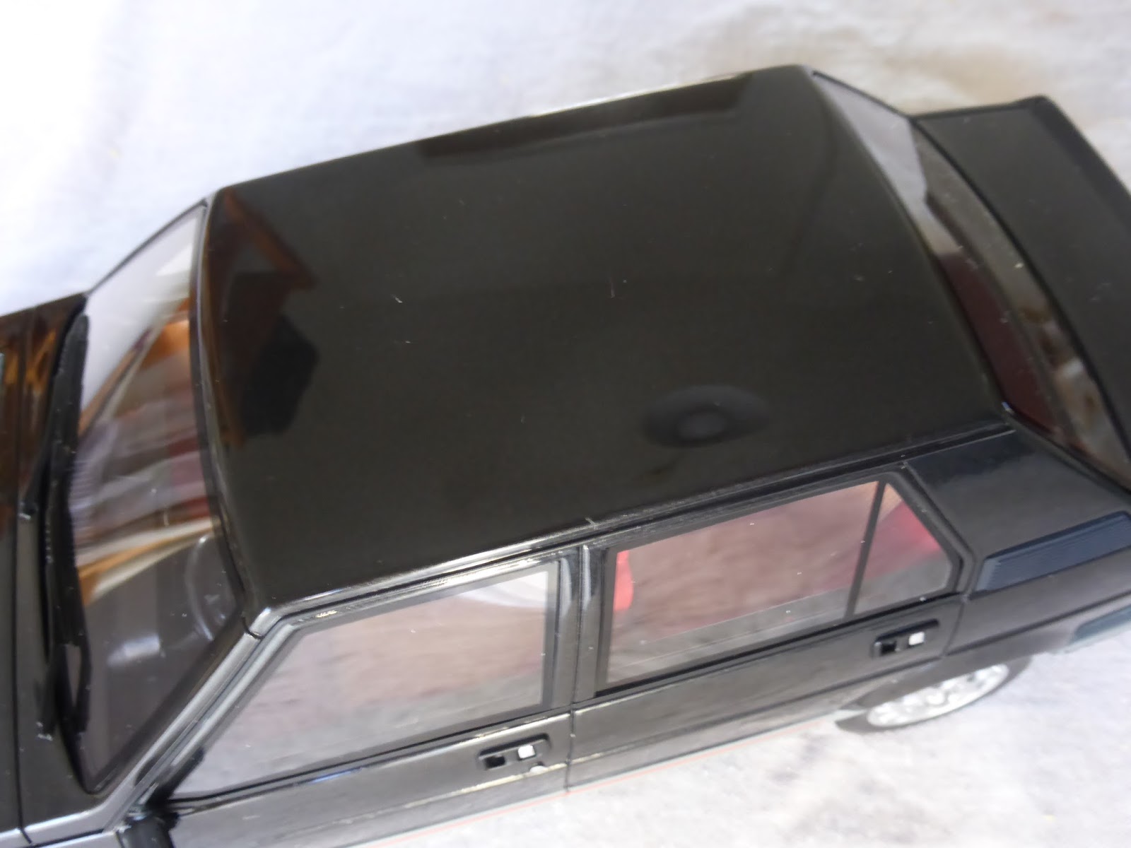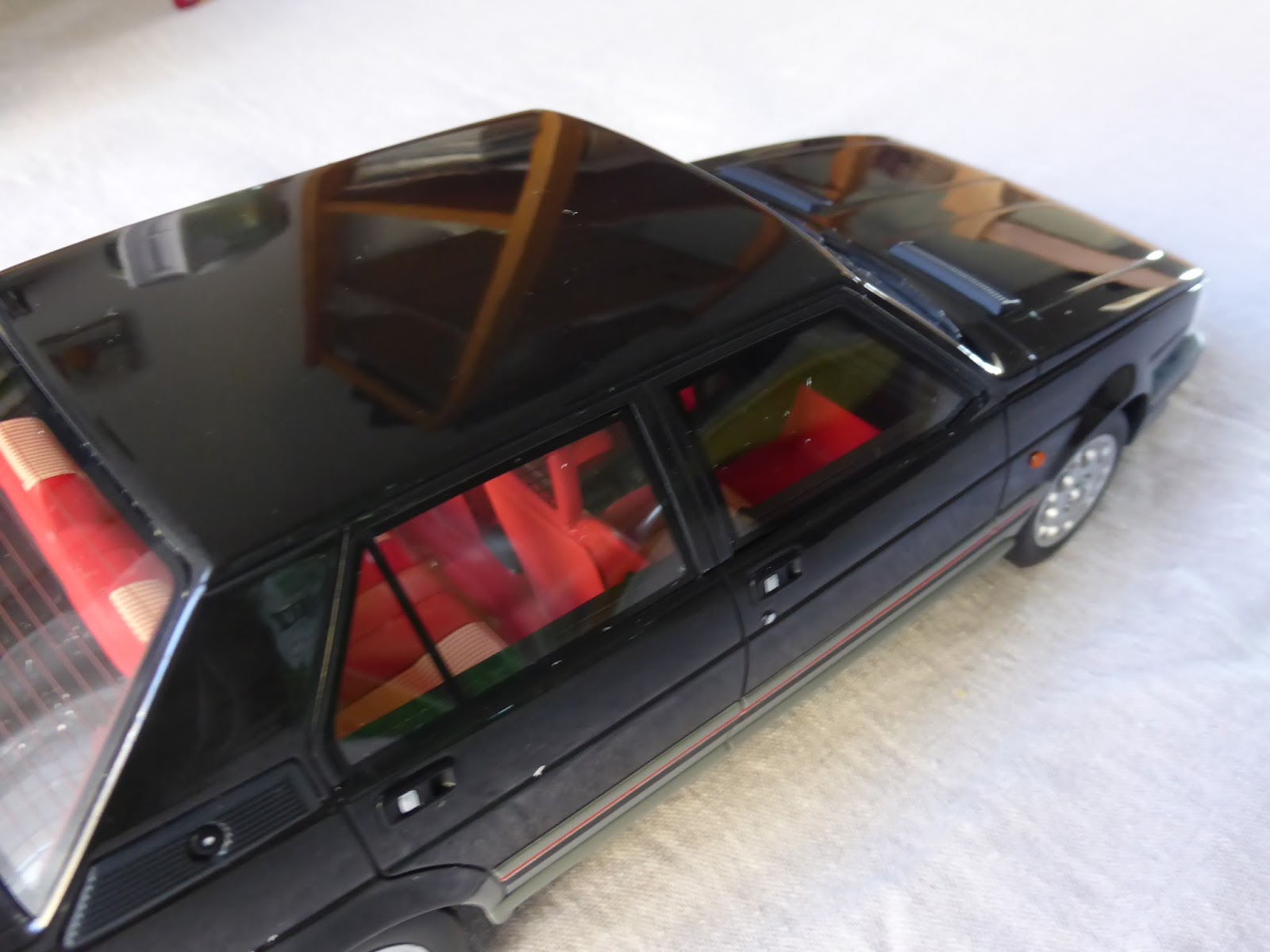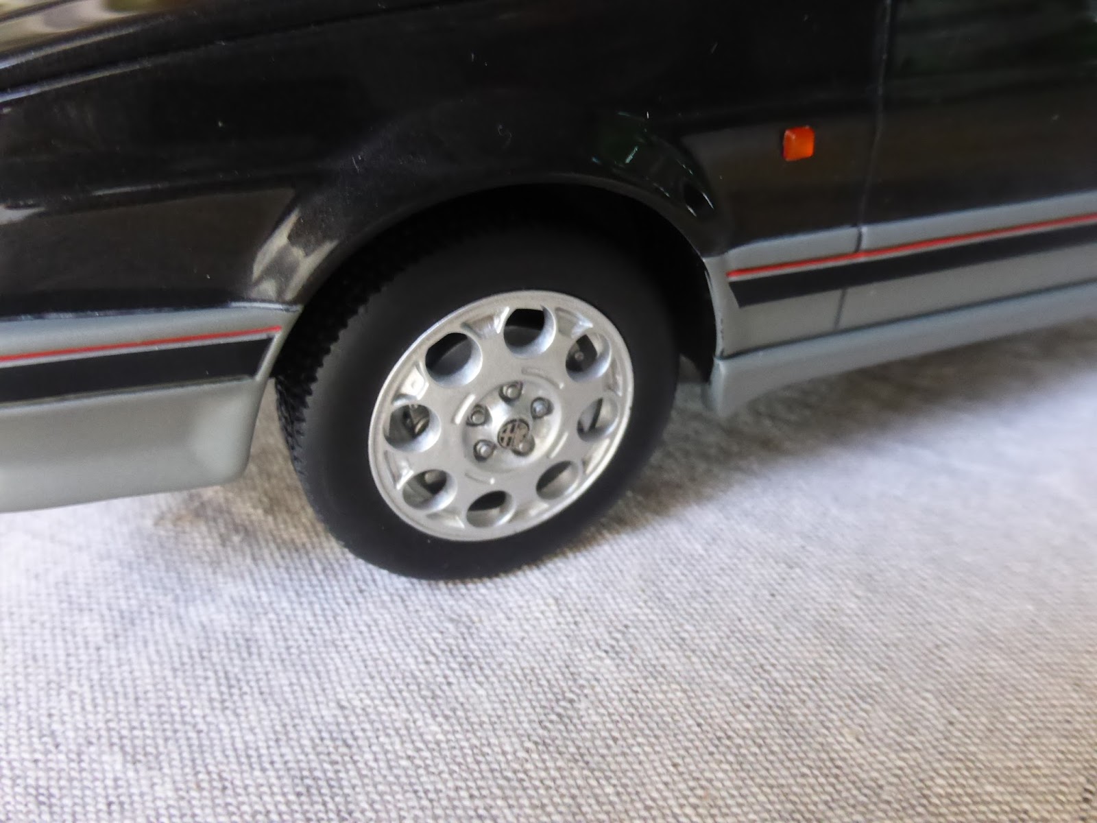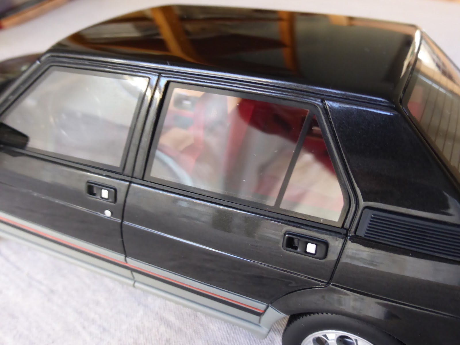 Con l\’uscita del modello della Giulietta in scala 1:18 (di cui potete leggere la recensione della versione 2.0 standard su questo stesso blog, http://grandiepiccoleauto.blogspot.it/2015/11/focus-su-alfa-romeo-giulietta-20-di.html ), Laudoracing non s\’è lasciata sfuggire l\’occasione di riprodurre anche la versione Turbodelta, in due configurazioni: con o senza il vistoso adesivo laterale. A questo proposito, sembra che tale fregio non fosse previsto nella produzione ufficiale, ma la presenza di esemplari provvisti dell\’adesivo Turbodelta ha consigliato Laudoracing di produrre anche questa variante, seppure in un numero inferiore di esemplari (500 per la configurazione completamente nera, 200 per la versione con adesivo). Per le considerazioni generali valgono ovviamente i commenti fatti nella recensione della 2.0 standard. Possiamo aggiungere – visto che non l\’abbiamo fatto nella precedente presentazione – che il livello di verniciatura è di assoluta eccellenza, e il discorso vale per tutta la produzione Laudoracing. Si tratta di un livello di finitura estremamente realistico, mai sopra le righe, che assicura ai modelli un aspetto convincente e \”serio\”.