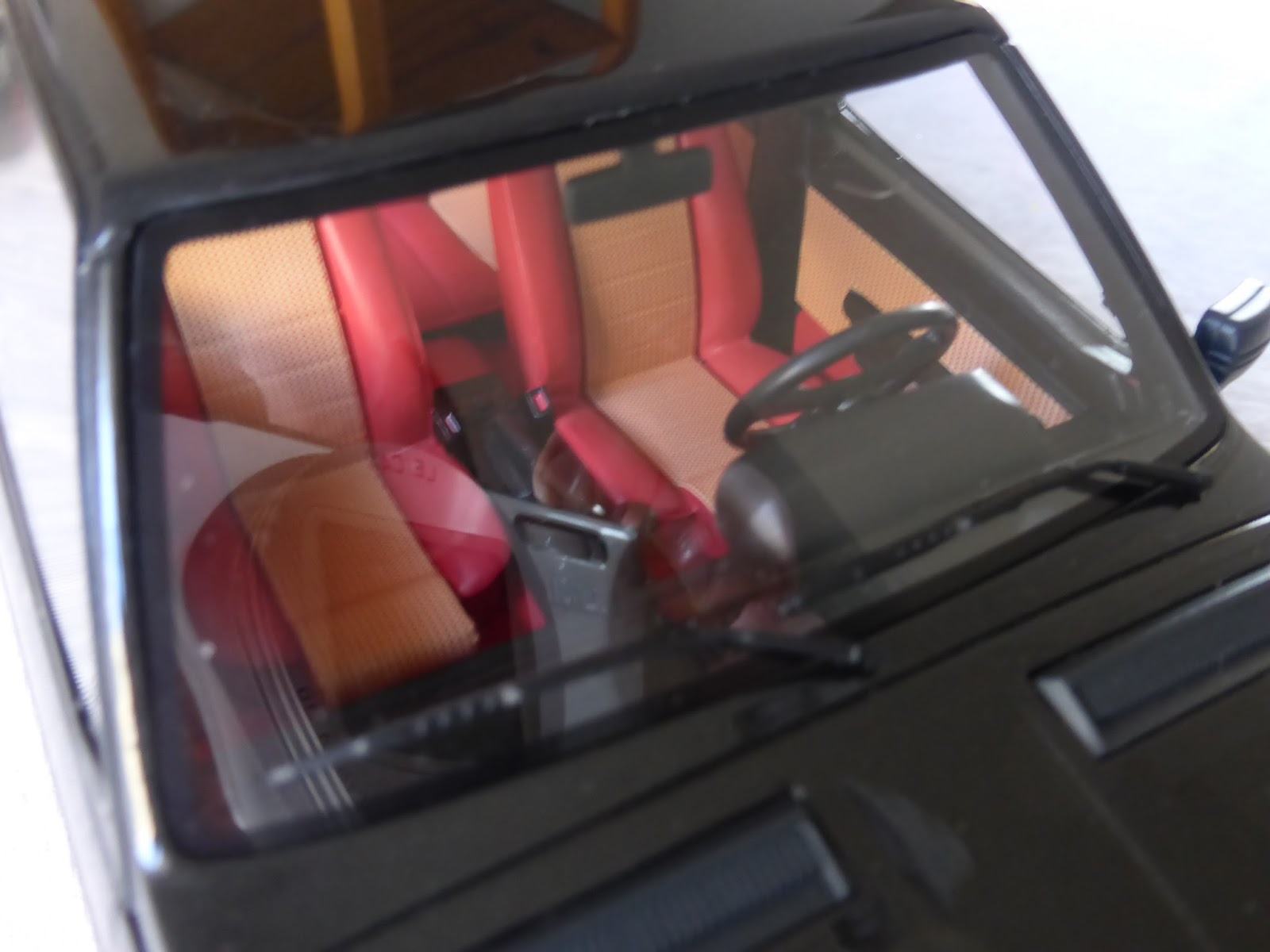 | La selleria bicolore è specifica: si trattava di tessuto e finta pelle. Correttamente, su questa versione, è stata inserita al centro della consolle, la decal riproducente il manometro della pressione del turbo. |