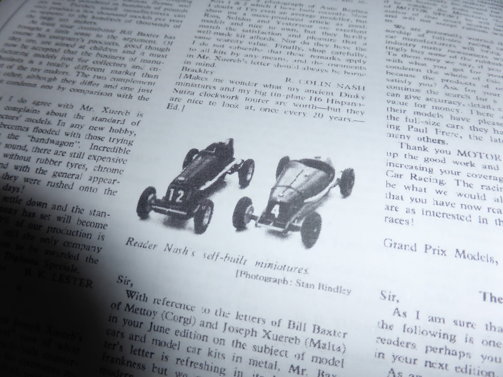 Nash allegava anche una foto dei primi due kit Auto Replicas montati da lui stesso, indicando come per questi modelli il confronto con i pur buoni Rio, Solido o Yesteryear non si proponeva. Certo, come aveva rimarcato Xuereb, la qualità di troppe produzioni artigianali era ancora inaccettabile, ma il mercato avrebbe presto operato una giusta selezione.