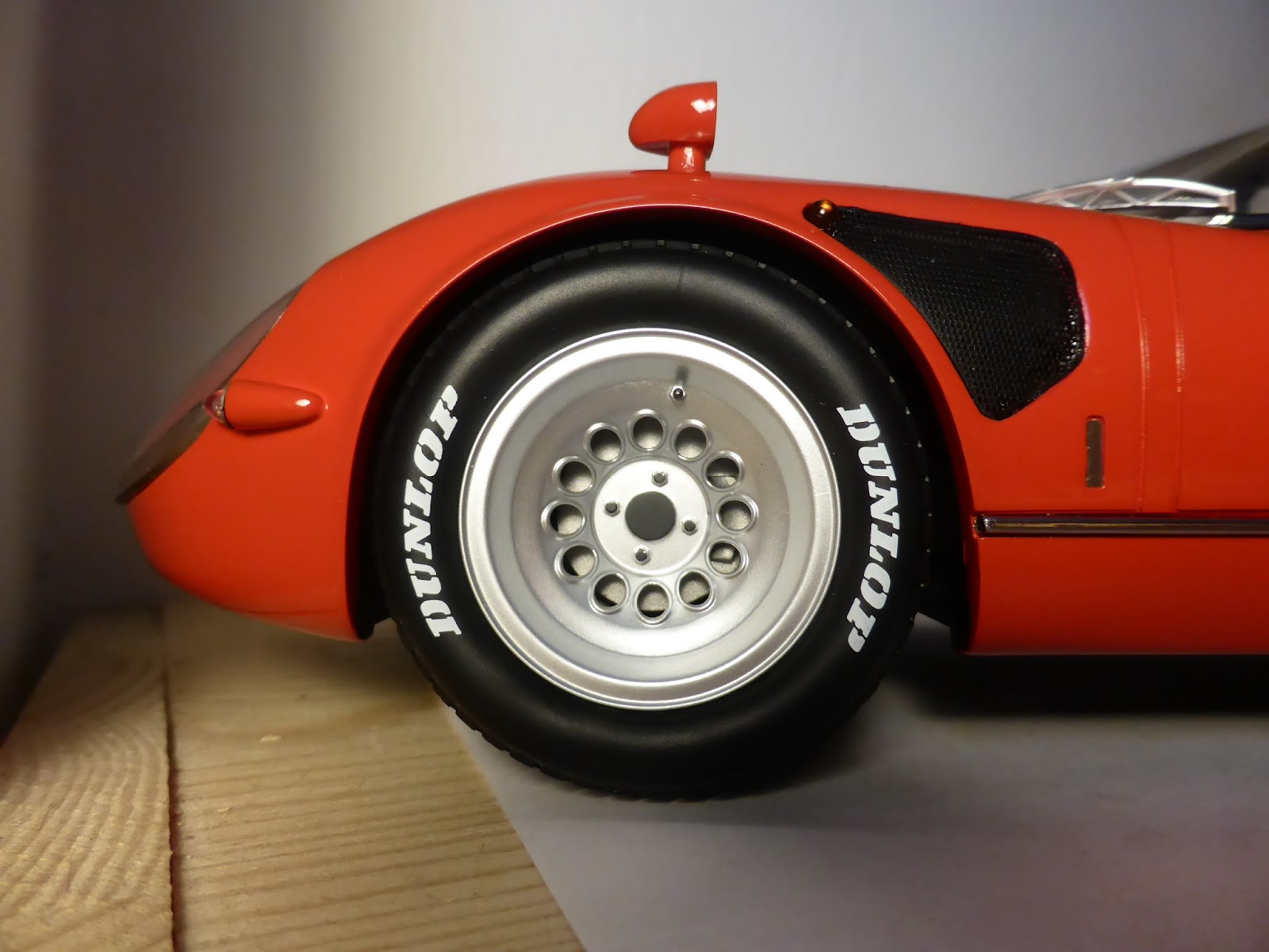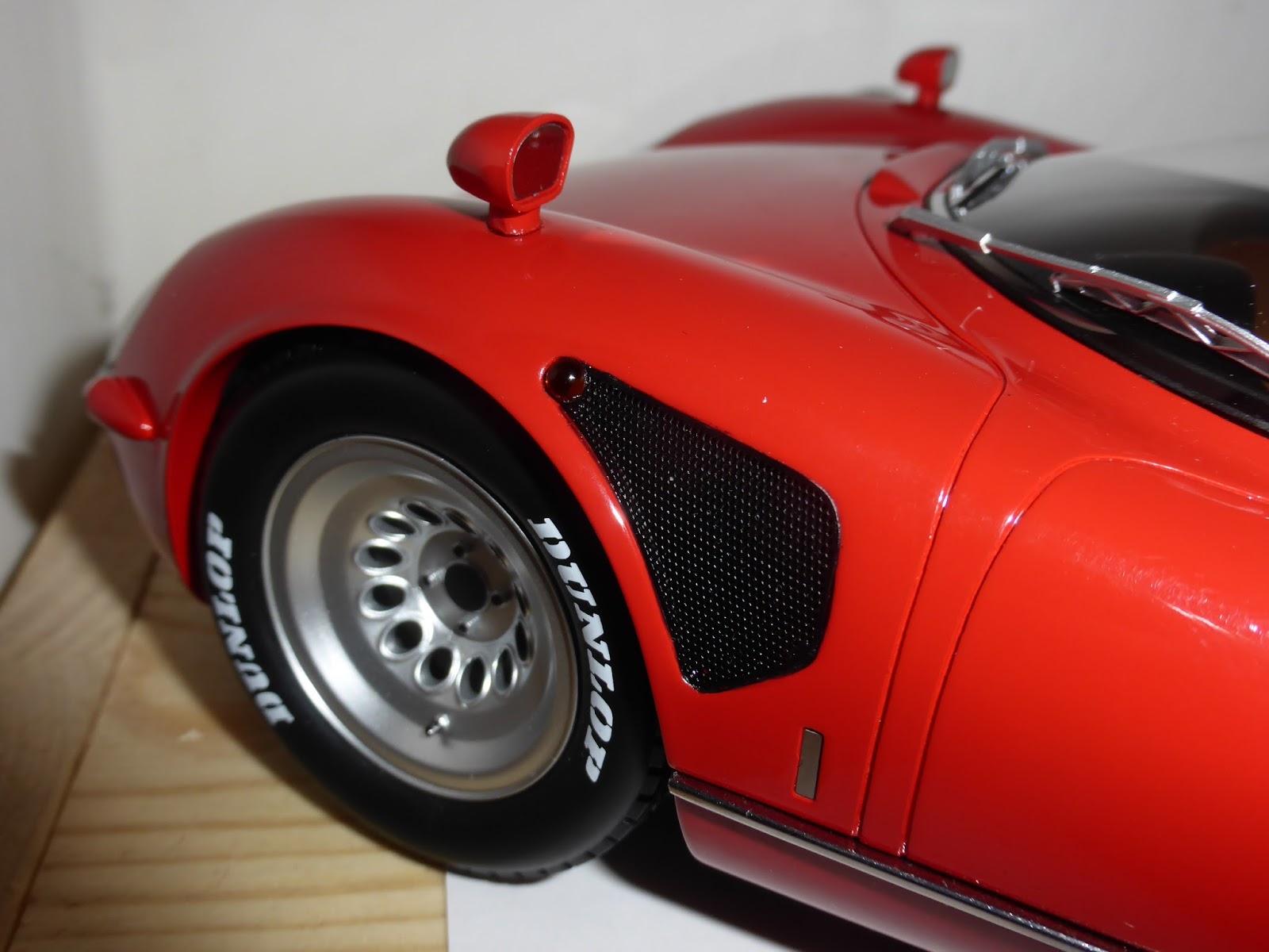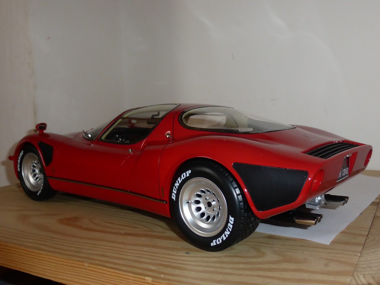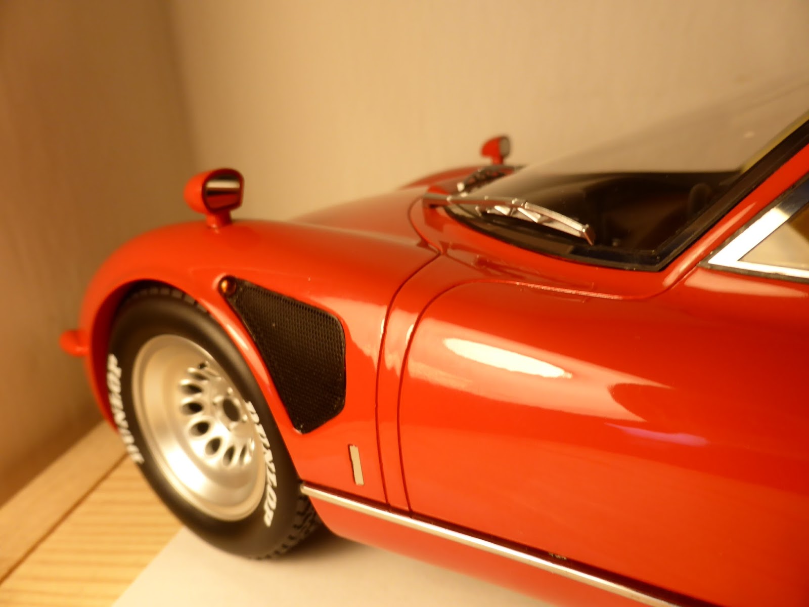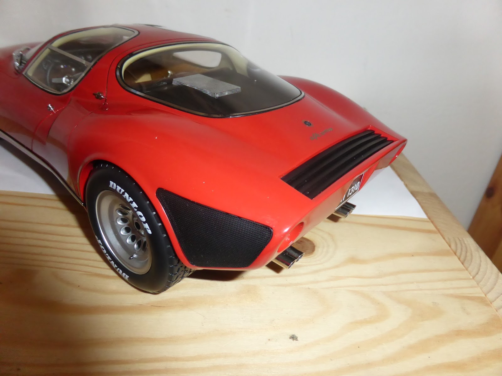 Presa,eccezionale a 360 gradi,tolta la scritta Dunlop che in origine non c'è e fatta fare su misura una bella teca di vetro con base in finta pelle bianca,in arrivo anche lo scudetto Alfa smaltato a corredo di tutto,speriamo facciano anche la versione prototipo vista al museo di Arese Guido