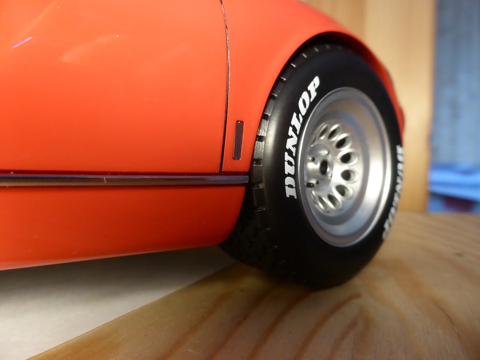 Cerchi in plastica e pneumatici in gomma dura con doppia scritta Dunlop tampografata, che mi lascia un po\’ perplesso. Non dovrebbe essere piuttosto \”Dunlop Racing\”? Forse anche troppo grande il carattere. |