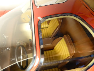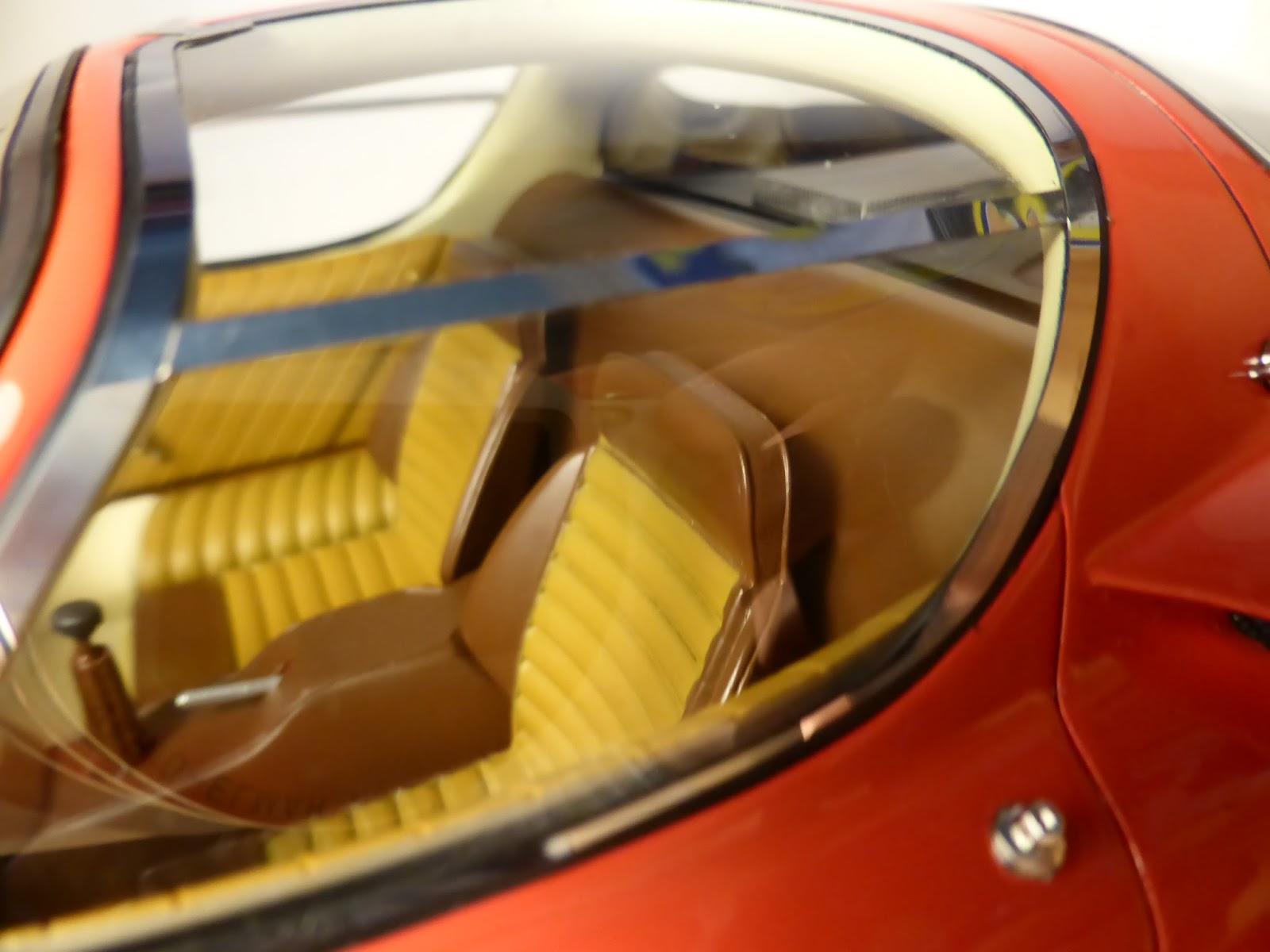 La componentistica degli interni, in plastica, rende benissimo l\’idea dei vari materiali. E\’ presente anche la puntinatura che simula il fissaggio della calotta della strumentazione al cruscotto. |