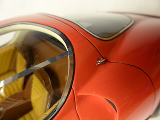Perfetto il montaggio della vetratura, con cornice in fotoincisione, vetro in acetato e parte nera a simulare la guarnizione in gomma. Le cerniere sono fotoincise, con tanto di riproduzione delle tre viti di fissaggio. |