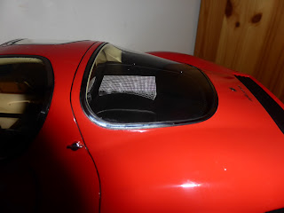 Perfettamente applicato anche il lunotto. La griglia laterale nera è fotoincisa, mentre le \”persiane\” posteriori sono in plastica. |