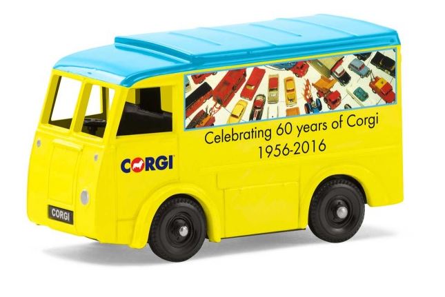 Il 2016 segna il sessantesimo anniversario del marchio Corgi. Per commemorare l\’evento, il fabbricante britannico ha previsto tutta una serie di iniziative, fra cui l\’uscita di diversi modelli celebrativi, con scatola speciale. Programmate auto, bus, camion e aerei. Per quanto riguarda gli automodelli usciranno in questa serie particolare, tra marzo e aprile, una Ford Escort Mk.I Mexico in diamond white, art.VA09519, una Rover P6 3500 Vip color marrone Brasilia, art.VA06519, e una Morris Minor 1000 in Highway Yellow, art.VA05808. I tre modelli saranno commercializzati col marchio Vanguards. In più è già uscito nella serie Days Gone un furgone promozionale con i loghi del 60° anniversario, art. DG205005), acquistabile solo dal sito ufficiale.