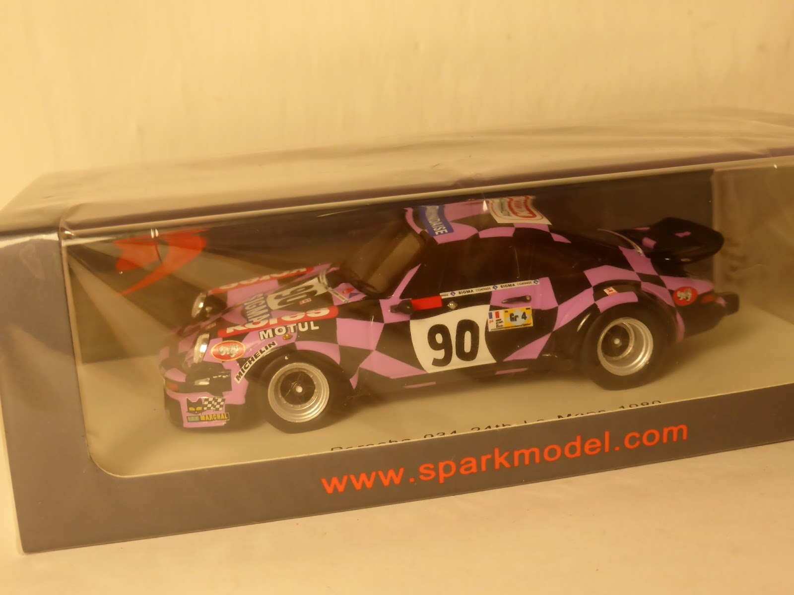 Da tempo il blog non recensisce né segnala l\’uscita di modelli Spark. Fondamentalmente per due ragioni: la prima perché è impossibile star dietro a tutte le uscite e ho preferito quindi prendere una decisione un po\’ draconiana; la seconda è più soggettiva ma ugualmente ben motivata: avendo perso, come collezionista, interesse in questi modelli, soprattutto per caratteristiche che non mi convincono più di tanto (penso ai cerchi cromati in plastica o alle cinture in decals), è logico che siano sempre meno i modelli Spark che mi sono passati per le mani in questi ultimi due-tre anni. Nondimeno esiste qualche eccezione e non è che ciò che di buono ha fatto Spark di recente io non lo abbia notato. Lo sforzo lo apprezzo, così come apprezzo la felicità di molte delle scelte, che spaziano dalle vetture di serie, alle intere griglie di Le Mans, fino alle affascinanti vetture di Formula 1 degli anni settanta-ottanta. Oggi farò un\’eccezione, Spark fa il proprio rientro nel blog con due \”coups de coeur\”, come dicono i francese. Due soggetti del tutto diversi fra loro, ma che testimoniano la validità del lavoro del marchio di Ripert anche nella classica scala 1:43, oltre ovviamente a certi exploit nell\’1:18 di cui ho parlato ben raramente, me ne rendo conto. Due soggetti, dicevo, scelti un po\’ alla rinfusa, ma non troppo; dei modelli che nella mia vita di collezionista hanno avuto la loro importanza. Il primo non è un nuovo stampo: la Porsche 934 di Spark è uscita da un bel pezzo, ma questa è una delle versioni più belle, la Kores di Le Mans 1980 (ref. S4422). Ricordo sempre le decals BKS da adattare sul Solido, e poi tanti altri modelli, compreso quello – eccellente – di Madyero. Secondo me la Kores di LM80 è la più bella 934 insieme alla Urcun di Le Mans 1978. Gusti, è chiaro. Quegli scacchi viola in campo nero mi hanno sempre attirato, e lo Spark ha tutto per piacere ai collezionisti. Non avendo poi i BBS classici ma dei Gotti a 5 razze, l\’effetto plasticoso a me tanto inviso è scongiurato. Una bella passata di alluminio opaco attutisce ancora più l\’impressione, come del resto è stato già fatto su alcuni modelli della serie francese. Un ottimo modello, con la qualità di un kit montato bene.