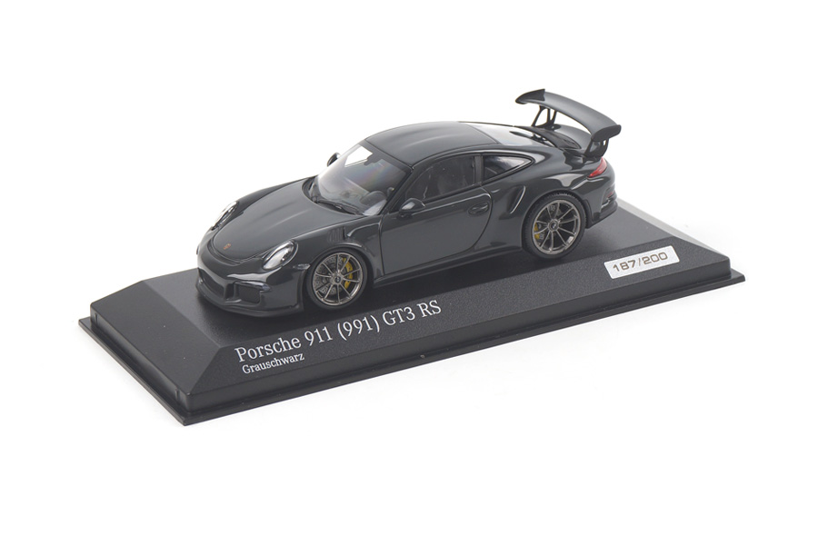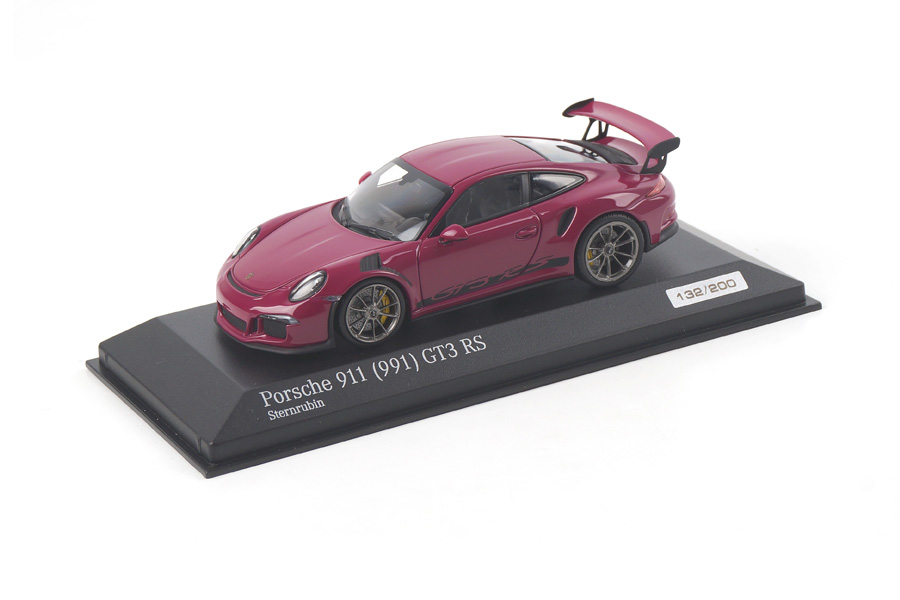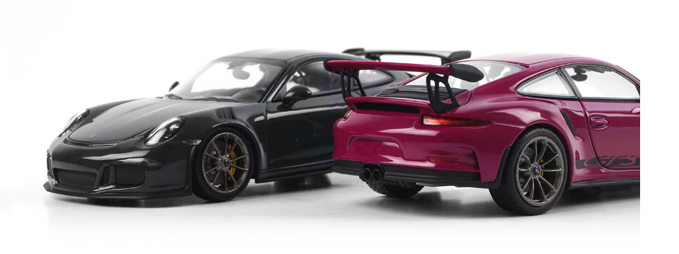 Non passa settimana senza che il negozio Cartima annunci delle edizioni speciali. Recentemente la collaborazione con Minichamps sembra intensificarsi e risale a qualche giorno fa l\’uscita di due Porsche 911 (serie 991) GT3 RS stradali, in grigio scuro e rubino. Ciascuna edizione è limitata a 200 esemplari numerati.