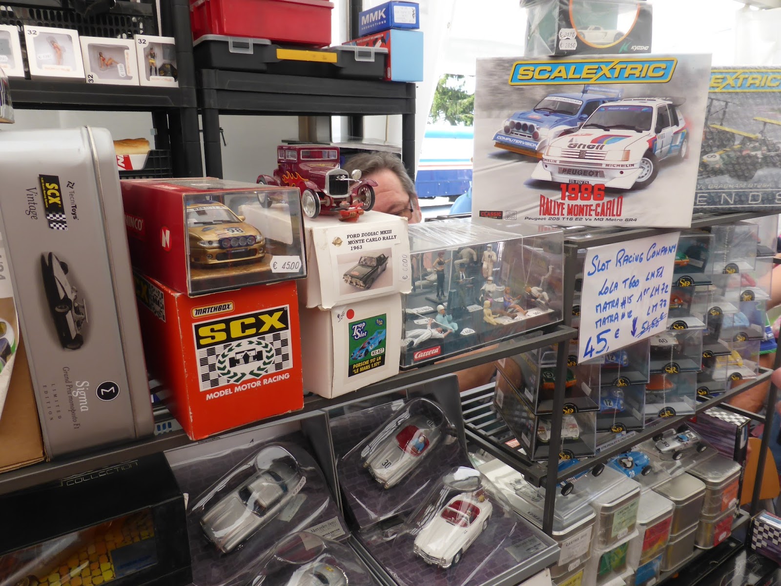 L\’offerta di modelli alla Le Mans Classic non è mai stata eccezionale; meglio cercare altre cose, e in queste ultime due-tre edizioni il tipo di prodotti in vendita non è cambiato di molto. Ben rappresentati gli slot, onnipresenti gli Spark, qualche venditore ha dei vecchi Corgi, Dinky, Solido, Norev in buone ma non perfette condizioni. Esistono anche, per chi vuole spendere poco, i Dinky Atlas. Nel villaggio c\’è da perderci ore, tante sono le curiosità in esposizione e ovviamente il parco macchine (vere) vale il viaggio.