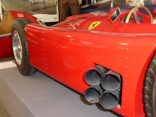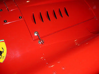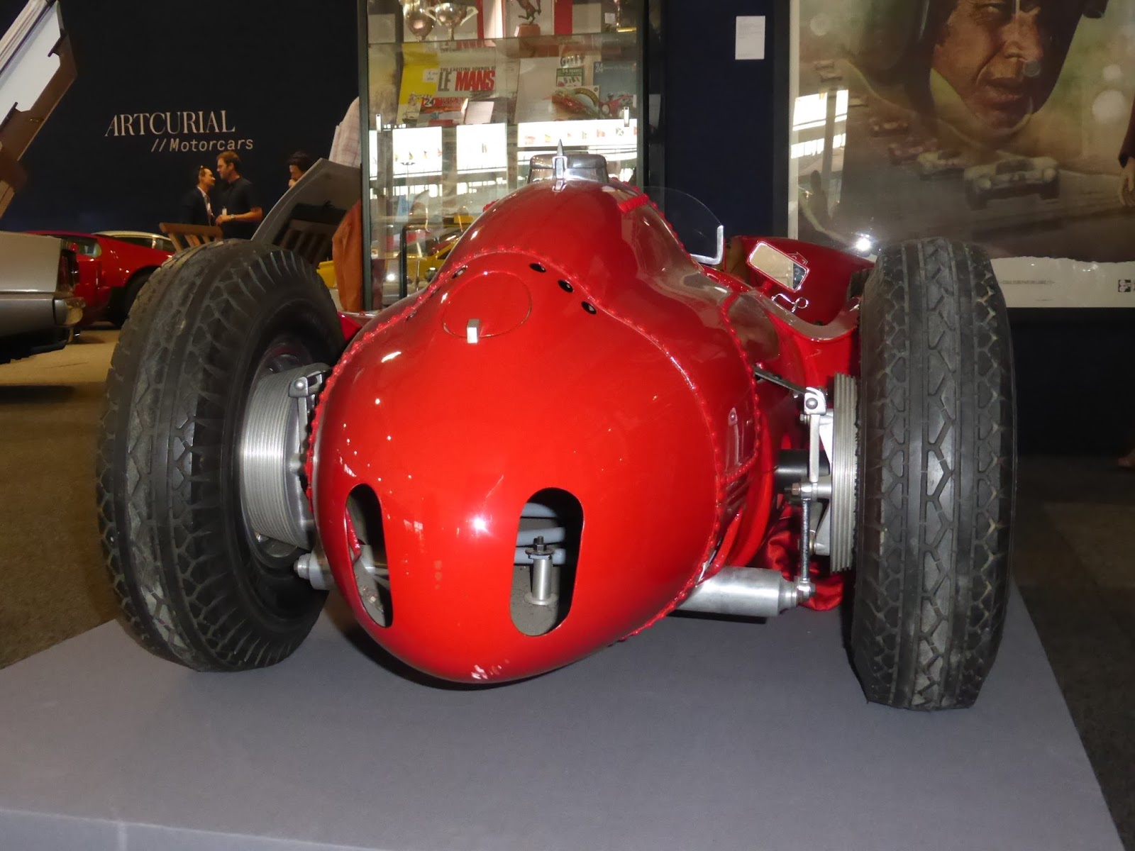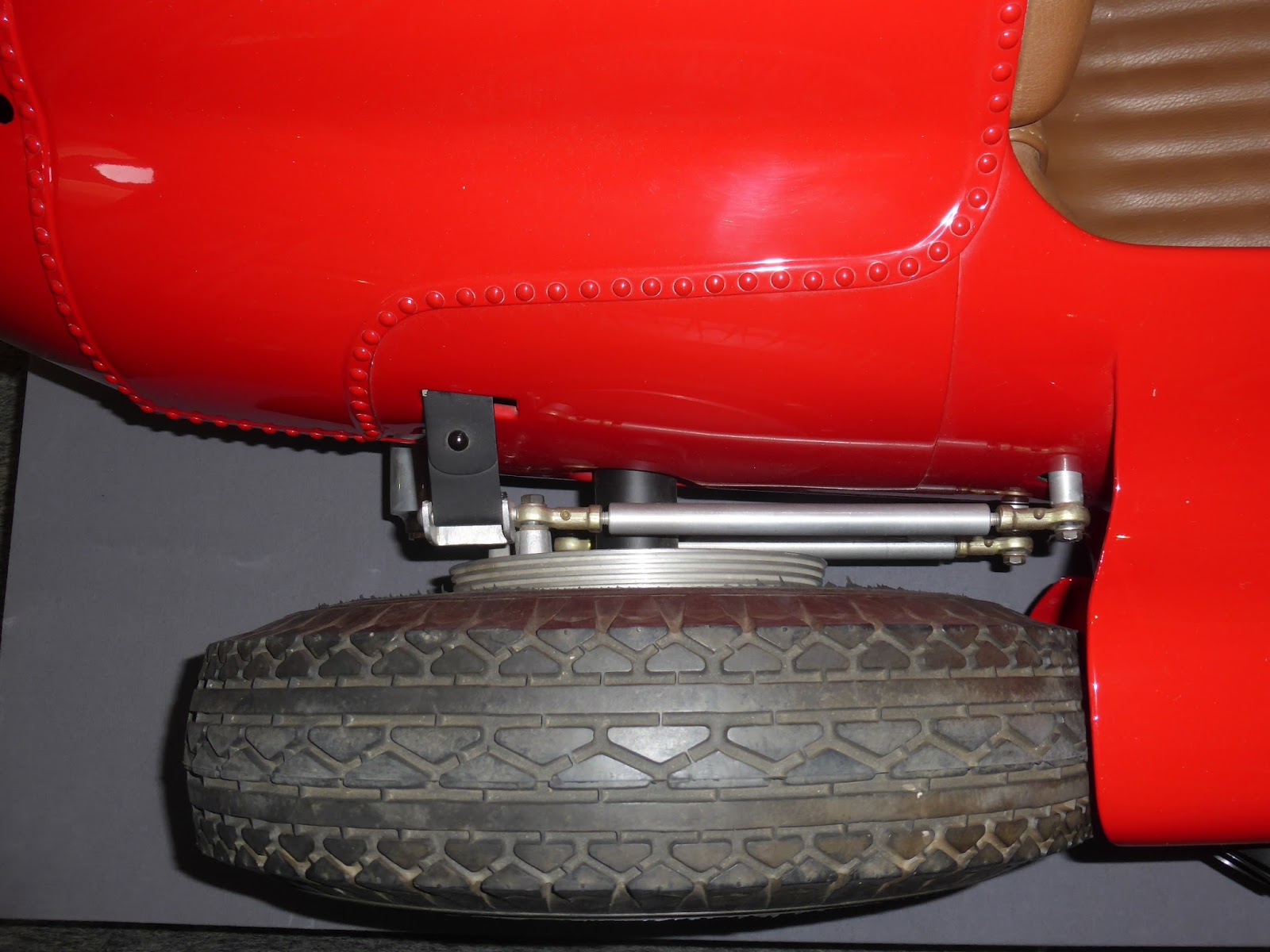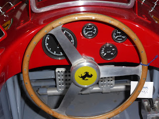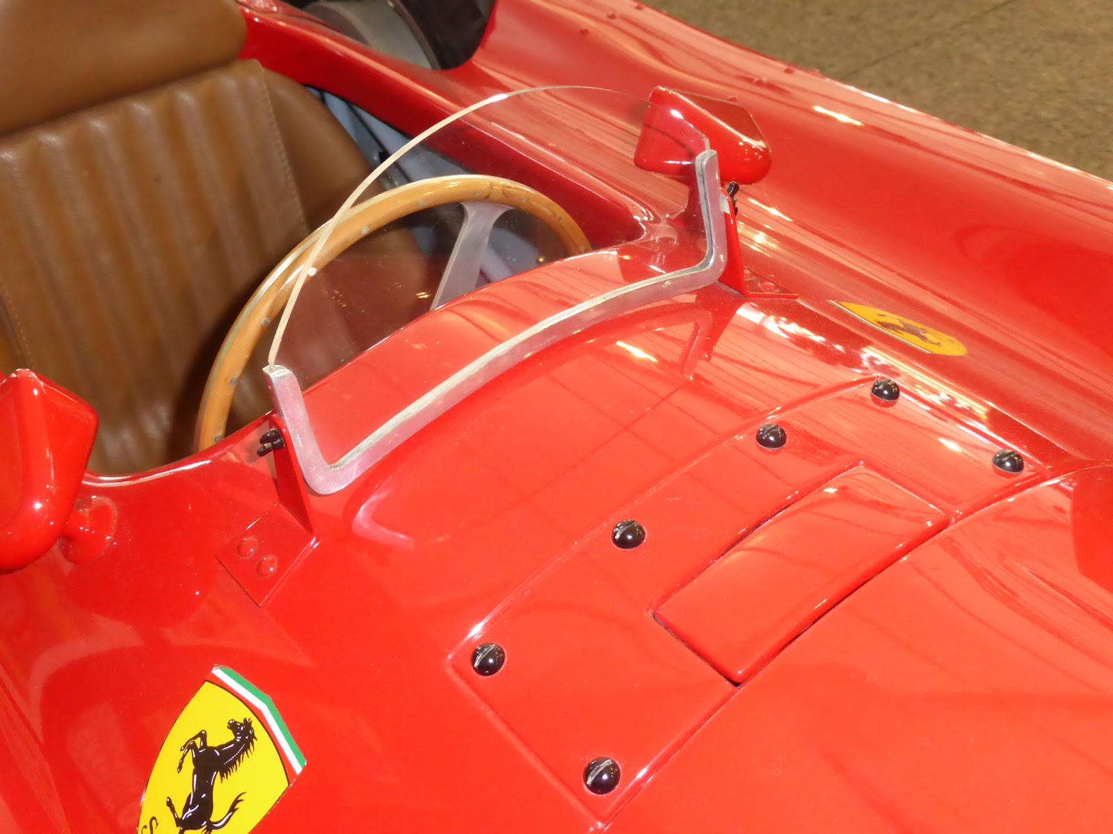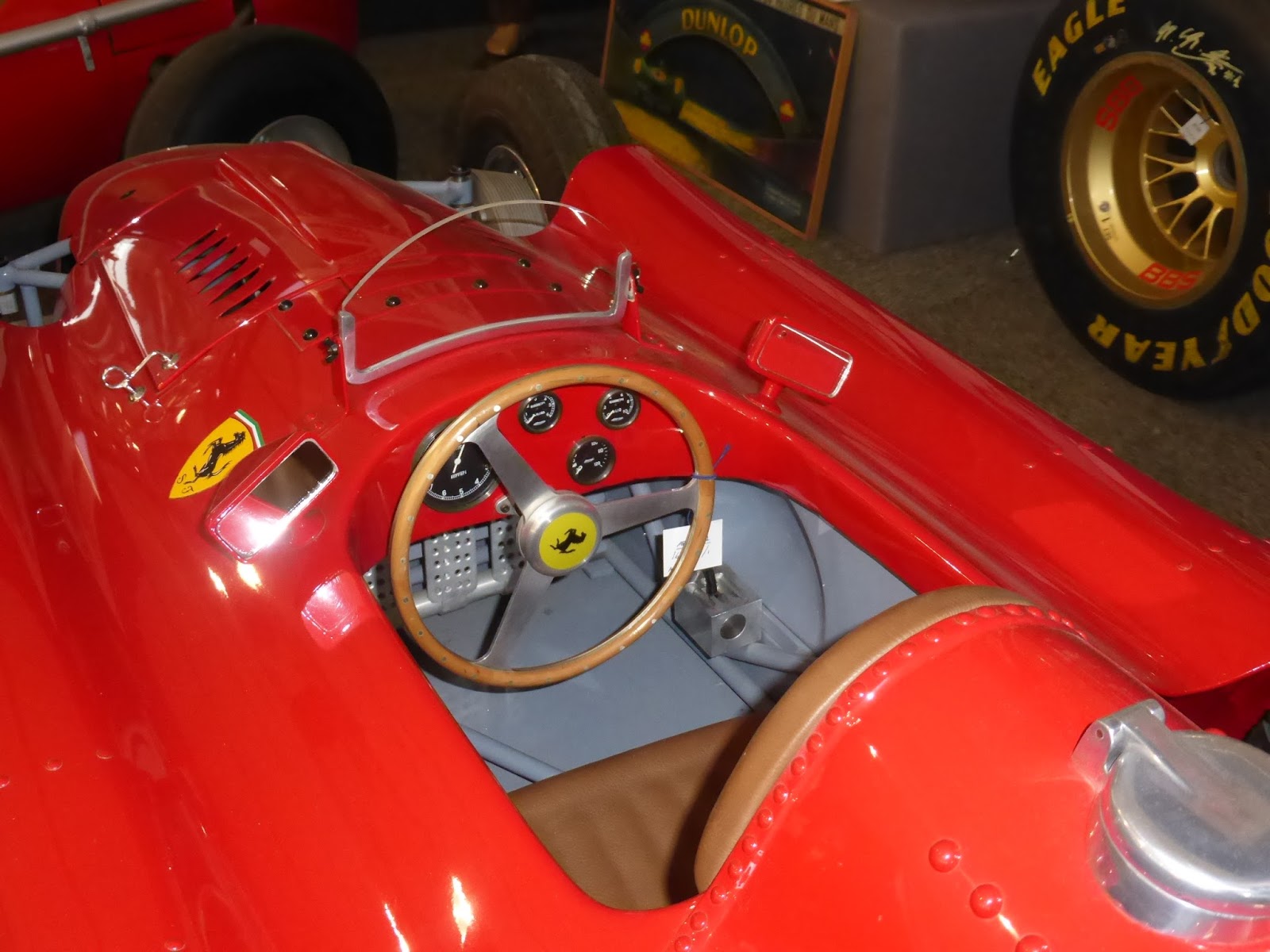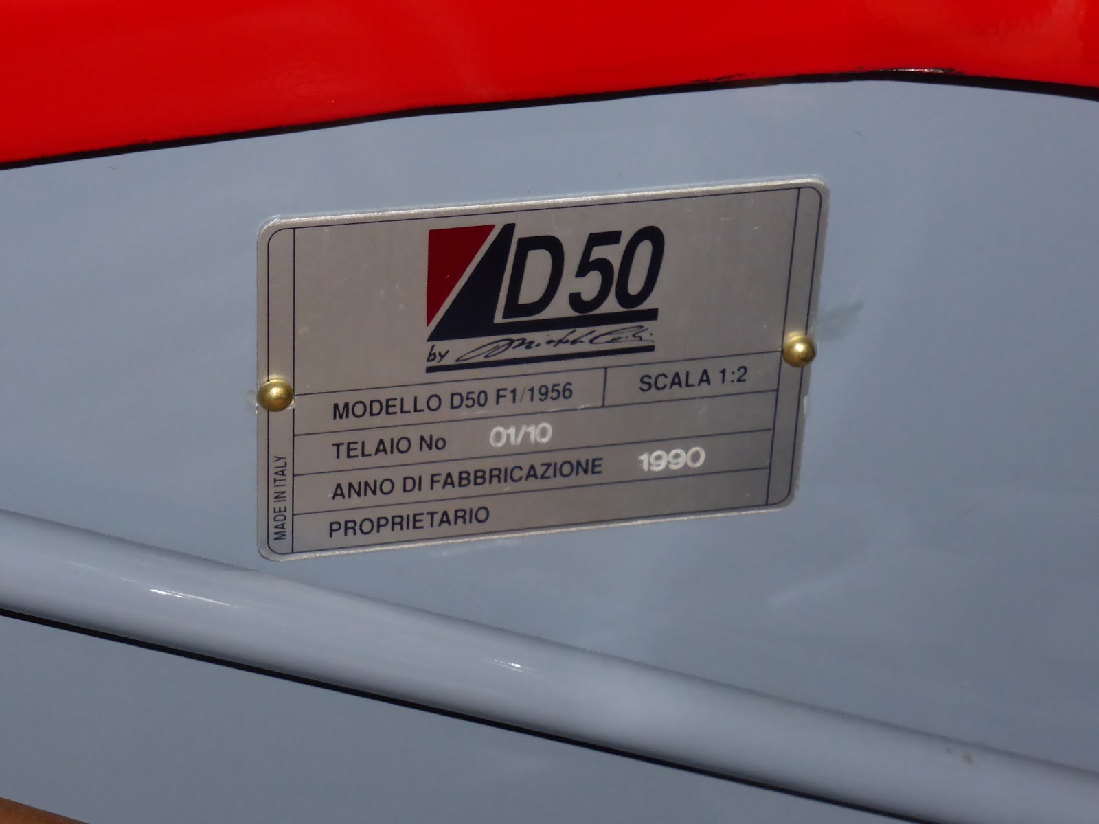 Michele Conti (1931-1996) è considerato uno dei più grandi modellisti dell\’epoca pionieristica e la sua opera è apprezzata dal pubblico degli appassionati e dei collezionisti. Quando le case d\’asta recuperano i rari pezzi della sua produzione, il risultato è quasi sempre in linea con le aspettative. A Le Mans, Artcurial ha portato un eccezionale modello in scala 1:2, ossia solo la metà rispetto all\’auto vera. Si tratta della Ferrari D50 che Conti realizzò nel 1990, ufficialmente in 10 esemplari numerati. Questo è il numero 1/10, ignoro francamente quanti ne siano stati costruiti effettivamente. 68 kg di peso, questo modello è davvero impressionante; forse non più in linea con gli standard di un De Conto o di altri grandissimi del presente, questa D50 è comunque qualcosa di talmente particolare che è stata in grado di interessare anche chi non colleziona specificamente modelli in scala. La carrozzeria è in lamiera e i materiali impiegati per la costruzione sono i più vari.