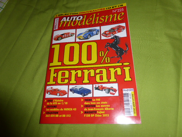 Il numero estivo (luglio-agosto) di AutoModélisme è una specie di monografia dedicata alla Ferrari. Il primo AutoModélisme speciale Ferrari risale a ben 20 anni fa (estate 1997), segno evidente che il cavallino tira sempre. Detto questo, si tratta di un numero con luci ed ombre. Luci perché ha bisogno di un po\’ di tempo per essere apprezzato; ombre perché di limiti questa rivista ne ha e mi sembra che recentemente la qualità e la cura siano abbastanza calate. Del resto mantenere il ritmo di un\’uscita mensile con una foliazione di 50-60 pagine presenta delle difficoltà tutt\’altro che trascurabili. Con Le Mans nel mezzo e con lo speciale Hors-Serie da consegnare in tempo per la Classic, i tempi si sono ristretti ancora di più e si è cercato di ovviare nel modo più classico di quando ci si trova in queste situazioni delicate: pochi testi e foto grandi. Qua e là ci sono articoli interessanti, come il montaggio della Ferrari F138 GP Cina 2013 di Fujimi in scala 1:20 oppure una breve storia della 212E di Peter Schetty campione europeo della montagna nel 1969, dove si apprezza una documentazione della carrozzeria prima versione vista nella salita di Ampus. Imprecisioni ce ne sono molte, come nel finale dell\’articolo in cui si cita il solo modello FDS come rappresentante dell\’1:43. Si parla poi di \”un certo\” Eduardo (sic) Lualdi-Gabardi? Un certo? Uno dei più validi gentlemen driver degli anni sessanta. Altre cose più o meno valide accompagnano un numero che farà comunque fatica a soddisfare i lettori durante le loro vacanze.