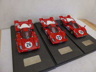 | Le tre Ferrari 512S Coupé ufficiali schierate alla 24 Ore di Daytona del 1970. Il modello è disponibile solo montato. |