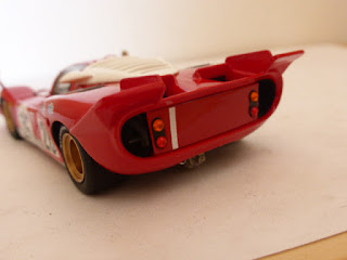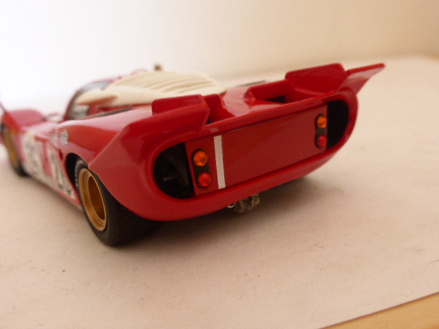 | La ricerca del dettaglio storicamente esatto è testimoniata anche dalle fasce bianche sullo specchio di coda, aggiunte per distinguere le tre vetture in corsa. |