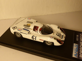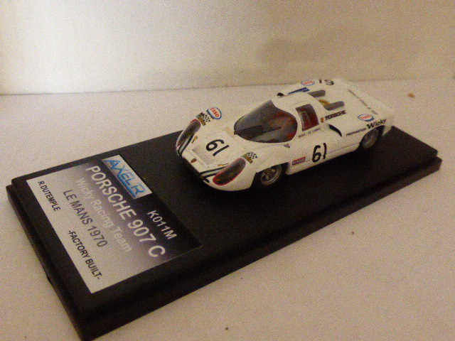 L\’abilità e la passione di Roger Dutemple di Axel\’R sono ben conosciute nell\’ambiente dei modelli speciali in scala 1:43. L\’artigiano di Cournonterral, nel dipartimento dell\’Hérault ha in produzione tutta una serie di sport-prototipi e di vetture di formula decisamente interessanti, con una certa predilezione per soggetti un po\’ meno conosciuti quando non inediti. La Porsche 907 corta non è fra le sue ultime creazioni, ma già la particolarità della versione – la vettura dello svizzero Wicky Racing – e il fatto che di recente siano state introdotte alcune migliorie al kit. Il modello è disponibile anche come factory built ma solo su richiesta. Gli Axel\’R montati sono rari da trovare in giro (qualcuno lo vedete sporadicamente su Grand Prix Models) e quando appaiono non c\’è da farseli scappare.