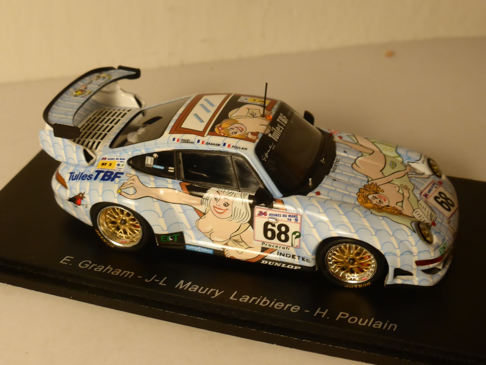 Con l\’uscita delle prime versioni della Porsche 911 (993) GT2 di Spark era ovvio che la più attesa era la numero 68 di Le Mans 1998, ossia l\’art car decorata da Wolinski e pilotata da Graham, Maury-Laribière e Hervé Poulain. La Wolinski è probabilmente la più amata delle 911 GT2 di Le Mans, e in passato ha goduto dei favori di molti produttori, dai classici leader del kit classico a Minichamps, che di recente ne aveva anche proposto una riedizione, peraltro senza alcun aggiornamento. Oggi abbiamo l\’interpretazione di Spark (catalogo S4448) e l\’attesa non è stata inutile. Già il modello di base è molto valido, indubbiamente uno dei meglio riusciti della produzione recente, e la cura dei particolari in questo caso è stata spinta al massimo. Insomma, ci troviamo di fronte a quanto di meglio Spark sia in grado di fare allo stato attuale. Un gran bel modello a un prezzo ancora abbordabile, specie se acquistato sui mercati giusti, destinato a completare in modo onorevole le raccolte di Porsche, Le Mans e di art-car.
