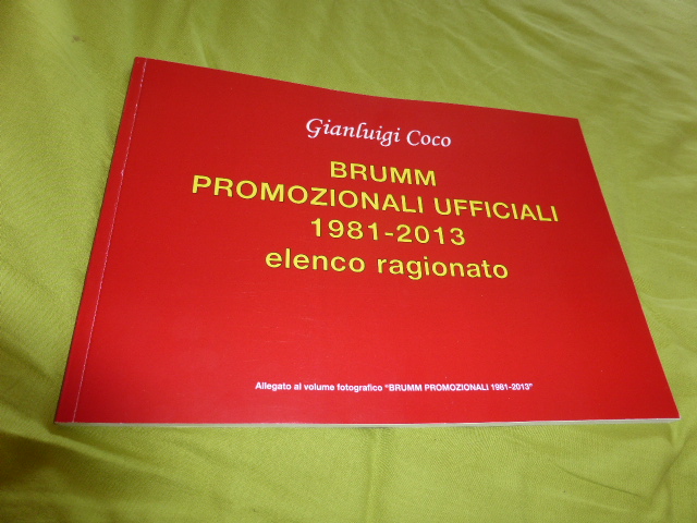Per chi non lo conoscesse, Gianluigi Coco è un appassionato siciliano, i cui campi d\’interesse sono svariati (ad esempio è un grande intenditore di modelli Corgi), che recentemente ha pubblicato un\’opera che ci sentiamo di consigliare senza indugio a tutti i collezionisti. Si tratta di un\’analisi dettagliatissima di tutta la produzione promozionale Brumm fino al 2013… ed un po\’ di 2014, come recita il titolo. Perché solo fino al 2014? Perché da quel momento in poi (anzi, già da prima) le fonti ufficiali scarseggiano, e il nostro autore ha dovuto sopperire alla mancanza di informazioni col solo lavoro di ricerca comparativa. Il volume, di una novantina di pagine e copertina cartonata, è stato tirato in sole 200 copie numerate.
