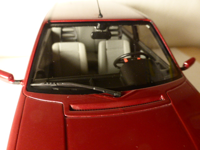 Bellissimi gli interni, col cruscotto perfettamente riprodotto e impreziosito dalle decal che simulano i vari comandi, la selleria con elementi centrali a quadrettini (in decal perfettamente applicate), il tutto condito da vere e proprie raffinatezze, come il \”cielo\” con la luce centrale o le varie gradazioni di nero opaco che rendono volta per volta l\’idea della plastica dura, della plastica morbida, della gomma e così via. Per fortuna sulla Uno i vetri erano interi e per questo mancano le brutte e inadeguate riproduzioni stampate insieme all\’acetato che dovrebbero simulare piccoli montanti e listelli (addirittura su alcuni modelli di questa fascia abbiamo visto un unico elemento comprendente anche i montanti centrali incollato direttamente alla carrozzeria: una soluzione discutibile in 1:43, figuriamoci su un modello più grande come un 1:18).