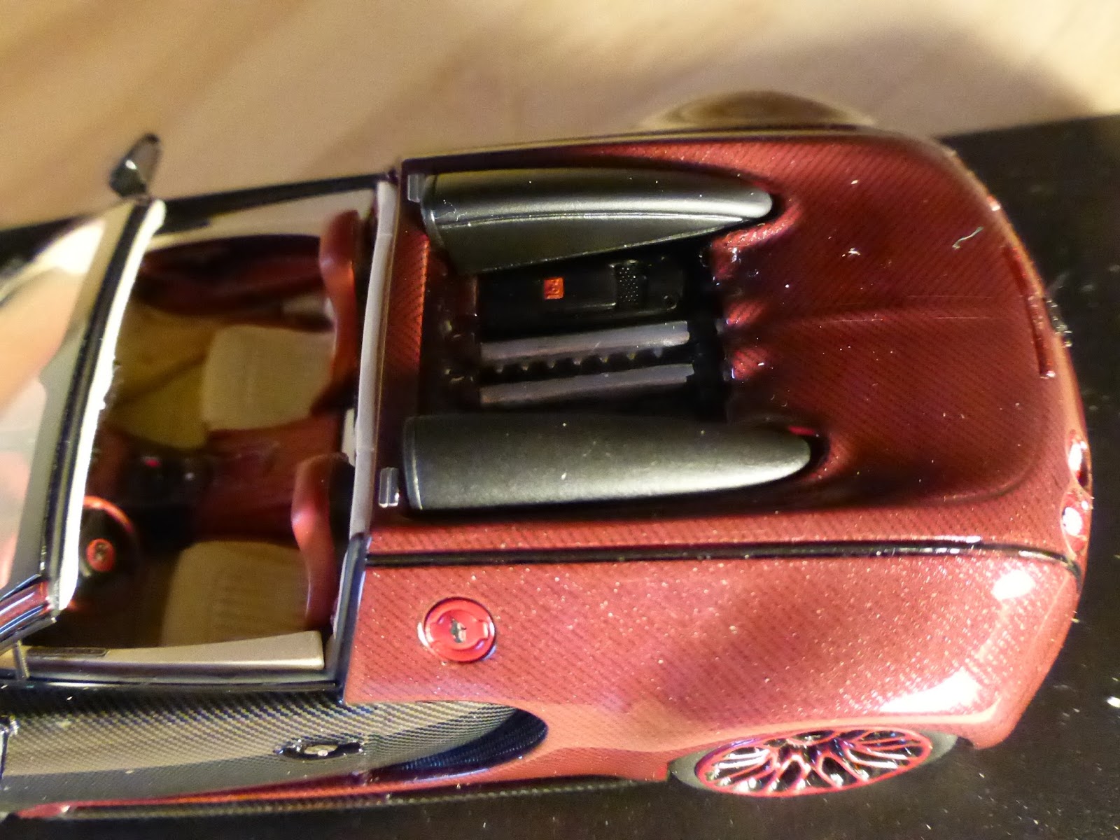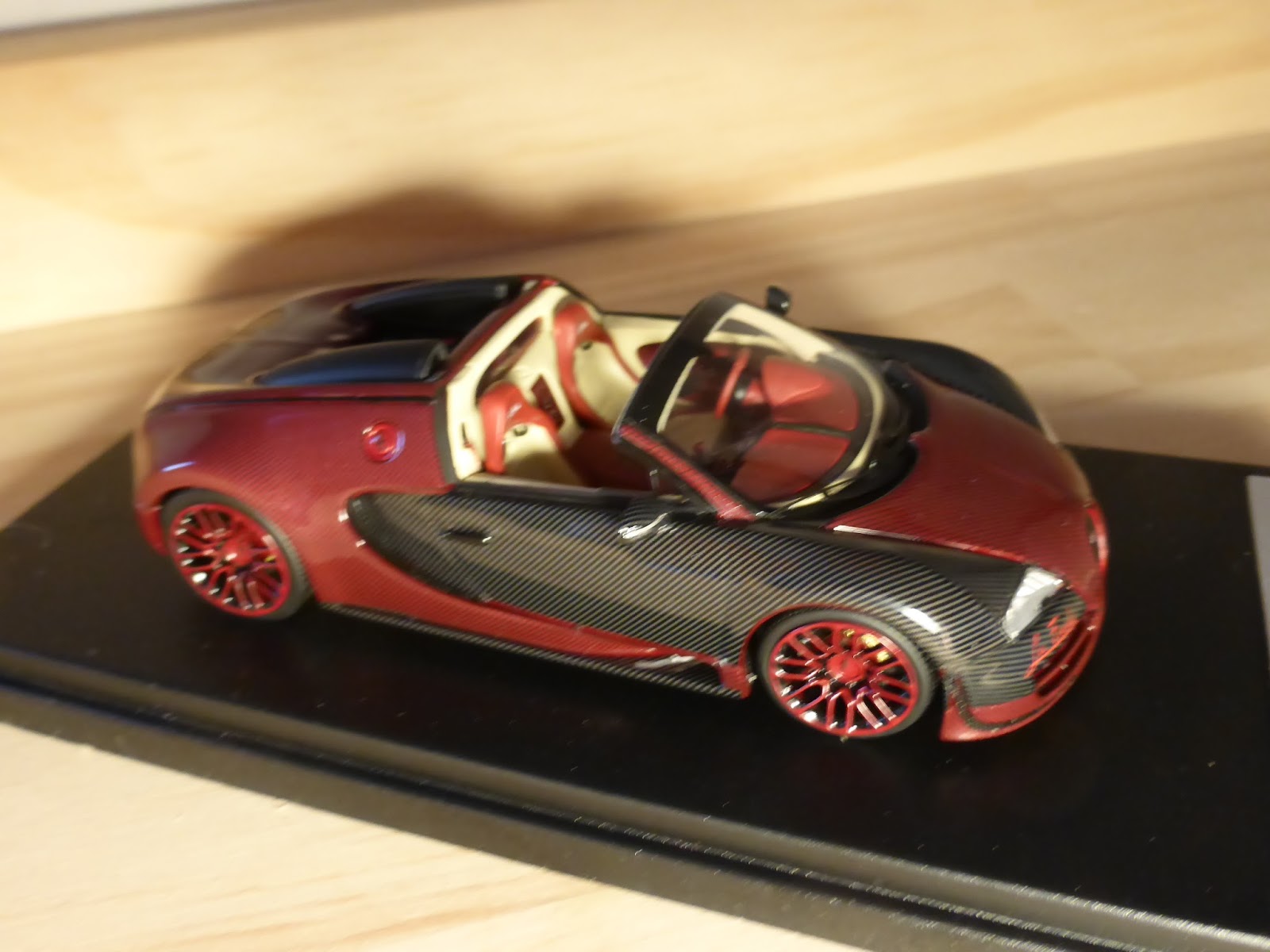 Caratteristica la sua colorazione carbonio rosso-carbonio nero con finitura lucida, che esalta le originalissime linee della Veyron. Gli interni, come sempre lussuosissimi e allo stesso tempo sportivi, propongono un riuscito abbinamento panna-rosso ciliegia.