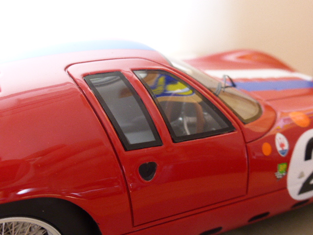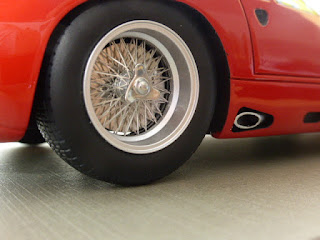 Fra i punti forti della Maserati di Tecnomodel vi sono i cerchi, torniti e correttamente dipinti in alluminio, con dei raggi fotoincisi nei quali si è riusciti ad evitare l\’antiestetico \”effetto tagliatella\”, che rischia di essere evidente già in una scala come l\’1:43, figuriamoci in 1:18.