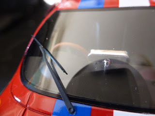 Per velocizzare la posa delle decals, Tecnomodel ha scelto di raggruppare alcuni loghi, e così nello specchio di coda il marchio BP è unito alla striscia bianco-blu da un raccordo trasparente che è impossibile non notare. Le decals sono applicate con grande cura. Secondo noi il numero di gara di coda dovrebbe essere diritto e non piegato verso l\’avanti.