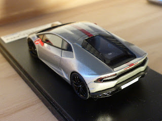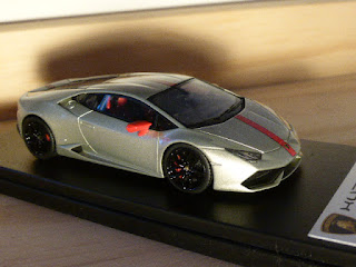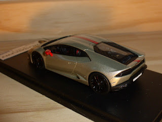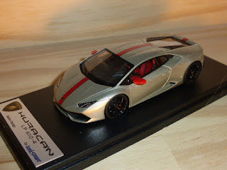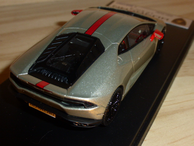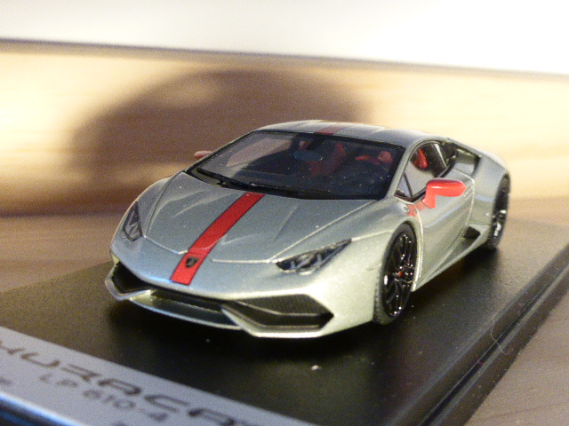 Mentre le riproduzione in 1:18 viene commercializzata col marchio MR Collection, in 1:43 la Lamborghini Huracàn porta il brand Looksmart. Anche questo modello, come la Bugatti Veyron di cui abbiamo parlato ieri, è stato proposto in diverse varianti. Cogliamo l\’occasione per parlarvi di una versione molto bella, uscita da poco, relativa al Salone di Francoforte 2015. E\’ la Huracàn LP610-4 in Grigio Admetus con una striscia rossa bordata di nero. E\’ una delle tante serie limitate (o limitatissime) e numerate di Looksmart. Stavolta gli esemplari sono 49. Questa mini-gallery può rendere un\’idea del livello raggiunto da Looksmart anche in scala 1:43.