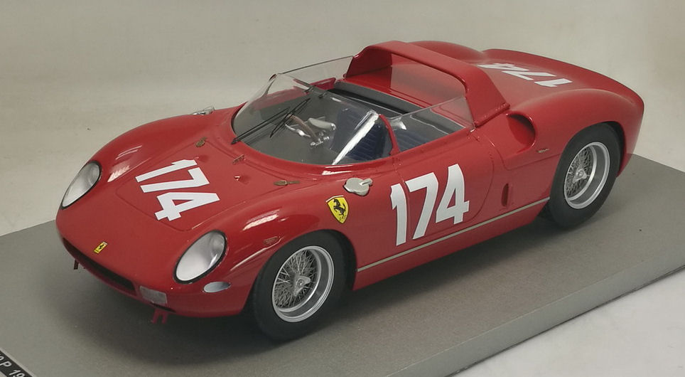 Prosegue il lavoro di Tecnomodel nella tematica GT e Sport-Prototipi Ferrari, resincast in scala 1:18. Molti soggetti, alcuni dei quali fino a quel momento inediti, sono già stati riprodotti, ma ne restano ancora tantissimi. Per la fine del 2016 uscirà la Ferrari 250 P, che sarà disponibile in cinque versioni: Presentazione (TMD1839A, non in foto), Le Mans 1963 #21 Bandini/Scarfiotti (TMD1839B), Le Mans 1963 #23 Surtees/Mairesse (TMD1839C), 1000km del Nürburgring 1963 #111 Parkes/Scarfiotti (TMD1839D), Targa Florio 1963 #174 Parkes/Surtees (TMD1839E). Si tratta di soggetti di grande interesse, che preludono ad altre uscite in un futuro a medio termine, che comprenderanno Ferrari 330 P3 e P4, Ferrari 512 S corta e Ferrari 512 M.