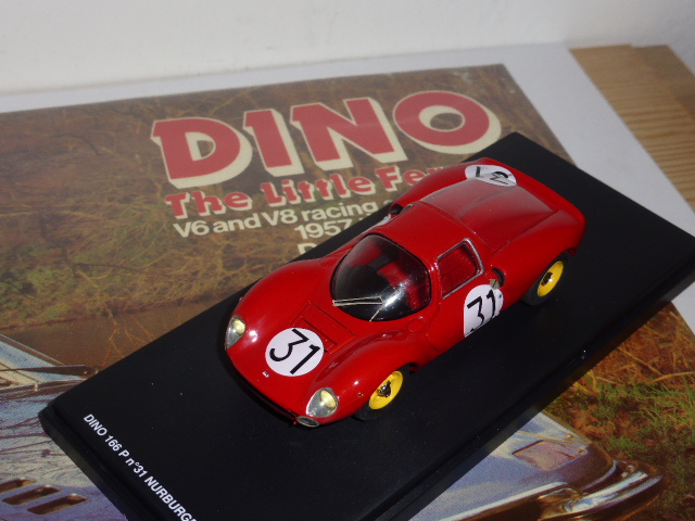 La riedizione da parte di Tron Models di una serie di montati della 166 P mi ha fatto pensare ancora a una volta all\’abbinamento dei modelli con i libri, un po\’ come i cibi si accompagnano a certi vini. Un modello in resina appartenente al più tradizionale dei filoni degli artigianali italiani: la Dino 166 P di Tron non è un modello economico (ci vogliono 160-165 euro) e ovviamente non è dettagliato come uno Spark, ma ha quello che forse gli Spark non possono dare: un fascino molto sottile e un grande richiamo storico, così com\’è. Un modello di una passata generazione che non per questo non è in grado di dire ancora la sua. La 166 P mi evoca sempre un altro modello, molto più lontano nel tempo, prodotto in serie limitata da Eco-Design nel 1984. Un modello che non ho mai avuto e che all\’epoca mi sembrava bellissimo, eccezionale. Oggi molto meno ma se ne apprezza l\’importanza storica.