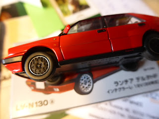 Come i giapponesi sono gente ligia al dovere, il modello Lancia è dotato di licenza ufficiale, con tanto di etichettina incollata sulla scatola. Beh, anche la scatola è molto \”giapponese\”, non lontana dallo stile che tanti collezionisti avranno apprezzato fin dai primi anni ottanta con i vecchi Diapet e altri marchi.