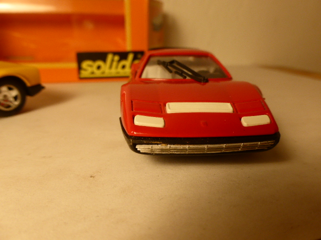 Normalmente la Solido era abbastanza generosa quanto alla scelta dei colori: per la BB, invece, non fu poi tanto originale, se le uniche due tinte in commercio furono il classico rosso Ferrari e il quasi altrettanto classico giallo. Punto e basta. Niente grigio metallizzato, niente nero, che avrebbe donato molto alle linee della BB. Gli interni furono solo bianchi.