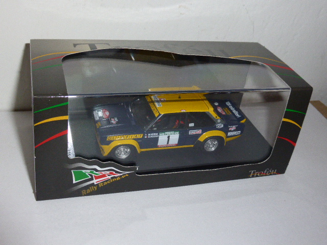 A mio parere quella di Trofeu è una delle migliori interpretazioni della 131 Rally, e i puristi apprezzeranno tanti dettagli che fanno la differenza, non ultima la corretta finitura opaca. Avendo a disposizione la Ford Escort RS2000, Trofeu non si è fatta sfuggire la versione italiana pilotata da Presotto, settimo assoluto e primo di Gr.1 al Sanremo 1979, \”navigato\” da Sghedoni. Gli appassionati avranno un tuffo a cuore nel rivedere questa vettura col caratteristico frontale rosso-arancio e gli inconfondibili numeri a doppia linea del Sanremo.