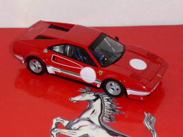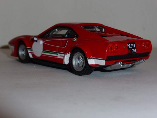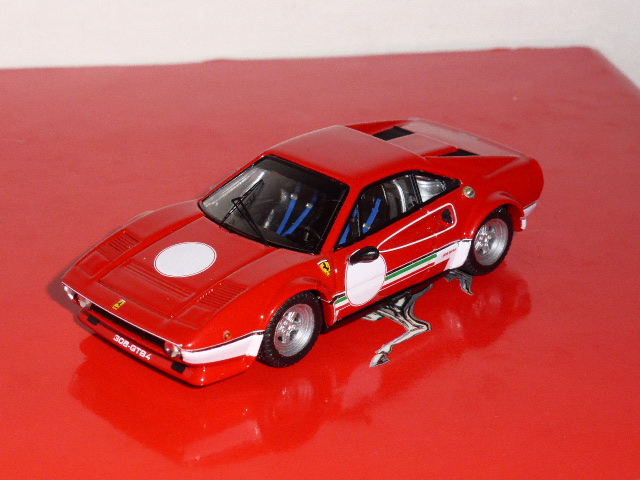 Per questa versione, Bang ha utilizzato una normale carrozzeria della 308 GTB Gr.4 rally, ma osservando le foto disponibili dell\’auto (in verità ben poche) si nota come rispetto alle Gr.4, la 308 dei test di Fiorano avesse una diversa forma dello spoiler anteriore, più grande, nonché un\’estensione della parte frontale del passaruota posteriore. A parte queste caratteristiche, come abbiamo detto inevitabili, il modello presenta alcune imprecisioni, come nella targa: nella foto pubblicata nel volume di Prunet, appare una \”Prova-MO190\”, mentre il modello riporta la cifra 193. Errata anche la colorazione: la parola Prova dovrebbe essere arancione e non bianca, mentre viceversa la sigla MO era bianca come il numero e non arancione.