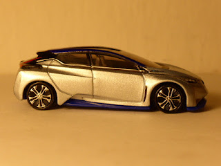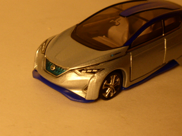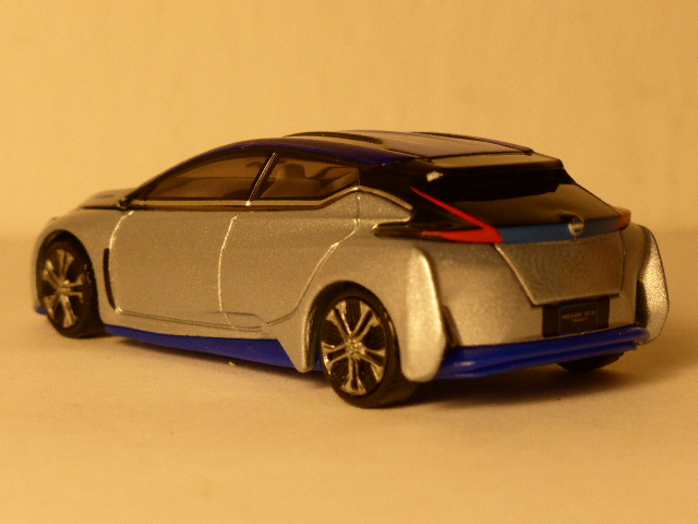 Al Salone di Tokyo, Nissan presentò la IDS Concept, un veicolo all\’avanguardia in termini di guida autonoma e massima connettività. Quanto questa vettura rispecchi il reale sviluppo delle automobili che guideremo fra cinque o dieci anni spetta decidere agli esperti di mobilità. In ogni caso, un\’auto dalle linee tutto sommato gradevoli che non si perdono in fantasiose anticipazioni pseudo-futuristiche non poteva sfuggire al produttore generalista più popolare in Giappone, Tomica, che nella serie Premium ha incluso una riproduzione in scala 1:61 della IDS Concept. Il modello è stato utilizzato anche dalla Nissan per scopi promozionali: si spiega così l\’assenza di scritte identificative stampate sul modello sul fondino; la dicitura \”Nissan IDS Concept\” è solo tampografata su un fondino in plastica blu che serve anche a riprodurre i labbri inferiori della carrozzeria. Il corpo vettura è in diecast con diversi particolari in plastica, come il bel padiglione del vetro. Ottima la finitura satinata in alluminio, con diverse tampografie che arricchiscono il modello di un convincente realismo.