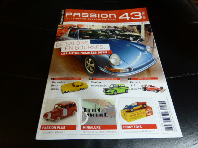 Il primo numero del 2017 di Passion43ème si focalizza su Rétromobile, in programma il prossimo febbraio, che è anche uno degli eventi-chiave cui partecipa Minialuxe, l\’azienda cui è legata questa pubblicazione, diretta da Didier Beaujardin. Fra gli articoli più interessanti, la seconda parte della retrospettiva sulle Ferrari 312 Formula 1, dedicata stavolta al periodo 1975-1980, ossia dalla 312 T alla 312 T5. Continua la saga Dinky-Matchbox, col decimo episodio che traccia tutto lo sviluppo della Mercedes 300 SL catalogo DY12, che uscì originariamente nel 1990.