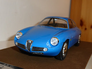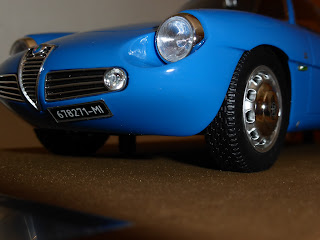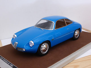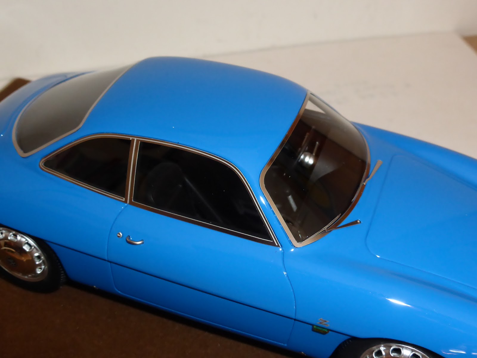 Annunciata da svariati mesi, è arrivata recentemente la Giulietta SZ di Tecnomodel in scala 1:18, un modello disponibile per il momento in due colorazioni stradali (blu medio e rosso) e in alcune versioni competizione. Vi proponiamo un\’ampia gallery che ritrae uno dei due modelli stradali; la SZ si conferma come uno dei migliori modelli prodotti da Tecnomodel in questa serie in resina prodotta in Cina. E\’ bello notare come le cornici siano tutte in fotoincisione, compreso quelle laterali; si è opportunamente evitato un brutto effetto-OttOmobile o Laudoracing con cornici plotterate e riprodotte tutt\’uno con i vetri, Certo, la fascia di prezzo di questi modelli è superiore rispetto a un Laudoracing, un OttOmobile o anche un GT-Spirit, e ovviamente non siamo certo in presenza della perfezione assoluta (alcuni particolari come la strumentazione, la pedaliera o lo stemma della targa avrebbero meritato forse un miglior trattamento), ma le forme corrette e tante finezze fanno della Giulietta SZ di Tecnomodel un modello desiderabile e di ottima presenza. Bella la presentazione, con la base rigida su cui sono incollate una moquette beige scuro e la targhetta fotojncisa.