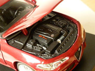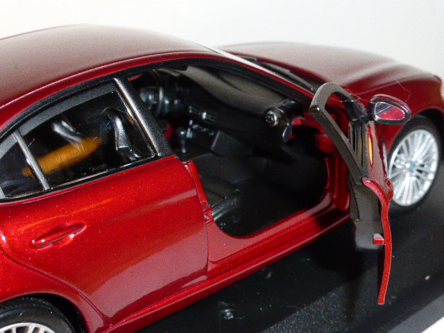 Possiamo comunque dire che gli interni sono ben riprodotti, il motore è accettabile, e tra i punti di forza vi sono l\’ottima verniciatura e l\’accoppiata cerchi-gomme. Le aperture sono tre (cofano e portiere anteriori); i tergi sono riprodotti in plastica e il modello è arricchito da alcune tampografie. Si tratta pur sempre di un prodotto che deve ottemperare alle norme di sicurezza del giocattolo e che va quindi considerato un necessario compromesso fra esigenze spesso difficili da conciliare.