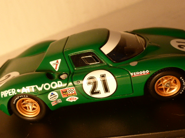 Con David Piper tutto era possibile, ma diamo per buona la classificazione 250 LM così come appare in tutti i documenti ufficiali. Riguardo a questa LM così particolare, Umberto Cattani mi ricorda che il primo a realizzarla in scala fu Philippe Marteau (MPA) con un kit in resina, ai tempi molto ricercato. Seguì il buon Marcello Giorgetti, che alla mostra modellistica di Scarperia, nel settembre del 1983, espose il primo bronzo di un futuro kit in metallo bianco. Ci volle del tempo prima che il modello uscisse, e – si sa – la documentazione di allora non era neanche lontanamente paragonabile a quella oggi in possesso dei fabbricanti. Le linee della vettura, però, \”c\’erano\”, e lo step successivo fu quello di Umberto Codolo, che nella linea low cost Tokoloshe fece uscire, nei primi anni duemila, un bel modello in resina, che beneficiava di tutta una serie di particolari più esatti, estrapolati da una ricerca documentaria senza dubbio più completa e rigorosa, grazie anche all\’uscita, in vari libri e riviste di altre foto più chiare su vari dettagli rimasti fino a quell\’epoca completamente ignoti.
