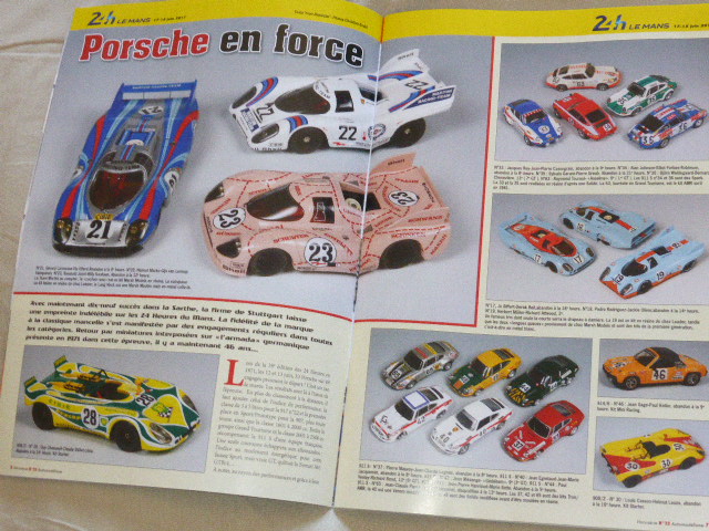 Ormai dalla fine degli anni novanta, AutoModélisme esce a luglio con un numero fuori-serie, dedicato alla 24 Ore di Le Mans. Pare ieri quando questa iniziativa venne varata, e in pochi avrebbero immaginato sarebbe durata vent\’anni e più. Anche quest\’anno non fa eccezione, ed ecco il numero dedicato alla gara disputatasi lo scorso giugno. Gli hors-série di AM hanno ovviamente anche una vocazione modellistica e ogni anno si ritrovano brevi articoli a tema. Stavolta c\’è qualche pagina dedicata alle Porsche alla 24 Ore di Le Mans 1971, in scala 1:43. Qualcuno penserà subito agli Spark e invece sono fotografati solo kit montati e elaborazioni Solido vecchia maniera, dalla raccolta di un collezionista svizzero che non viene citato. Immagini che fanno pensare a quando il collezionismo era molto meno omologato e ciascuna collezione aveva caratteristiche proprie, quasi un sapore proprio. Modelli trasformati su base Robustelli, Starter, Provence Moulage, Solido, AMR, Mini Racing, Marsh testimoniano un periodo che forse non esiste più ma che lascia dietro di sé un grande fascino e molta nostalgia.