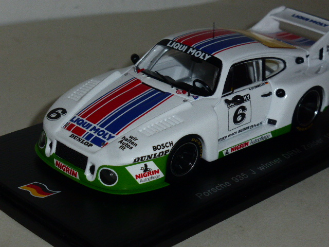 Non sorprende che la serie nazionale tedesca di Spark sia sempre fra le più prolifiche; il mercato germanico rappresenta infatti una risorsa importante per Spark e soggetti come questa Porsche 935 Joest continuano a essere molto apprezzati dai collezionisti. La 935/J è una particolare versione per la quale restano ancora diverse lacune da colmare. Con il catalogo SG027 è uscita da pochissimo tempo la riproduzione della vettura con la quale Rolf Stommelen vinse la Bergischer Loewe di Zolder, prova valida per il DRM 1980. Il modello è proposto in serie numerata e limitata a 300 esemplari. Avendo già in catalogo la 935/J, per Spark non è stato difficile riprodurre questa la versione sponsorizzata da Liqui Moly e Nigrin, probabilmente la più conosciuta. Un\’occasione interessante per aggiungere un\’importante 935 nelle vetrine dei collezionisti.