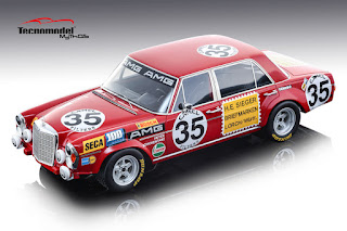Un po\’ a sorpresa, Tecnomodel ha annunciato una serie di Mercedes 300 SEL 6.3 stradali e competizione. Dopo parecchi soggetti del tutto inediti, la 300 SEL non è forse il massimo dell\’originalità, essendo stata già riprodotta nella stessa scala 1:18 da Minichamps (corsa) e AutoArt (stradale). Staremo a vedere. Potrebbe trattarsi di un\’acquisizione di stampi o matematiche e in quel caso forse la produzione troverebbe una qualche giustificazione. Le versioni proposte saranno cinque: stradale color nero, stradale color argento e tre configurazioni corsa (Spa, Hockenheim e Paul Ricard 1971).