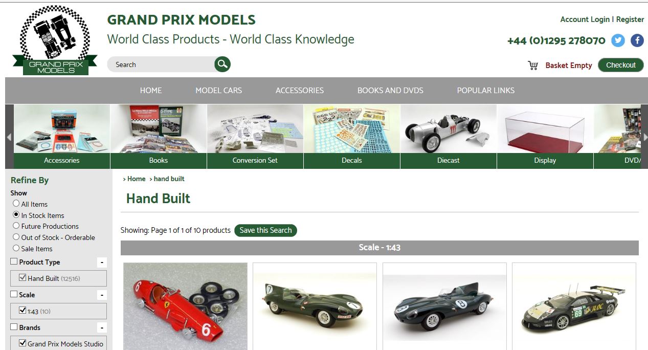 Da oggi è on line il rinnovato sito di Grand Prix Models: molto più chiaro nella grafica, il sito (sempre reperibile all\’indirizzo www.grandprixmodels.com) è ora più facile da utilizzare e i prodotti sono meglio catalogati e raggruppati. Ogni sottogruppo propone ora il totale dei modelli disponibili e i produttori effettivamente presenti in ogni categoria. La versione \”mobile\” è ora pienamente ottimizzata, con un\’evoluzione che rappresenta un grosso passo in avanti rispetto al sito precedente.