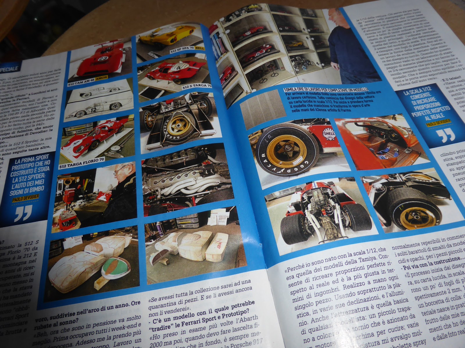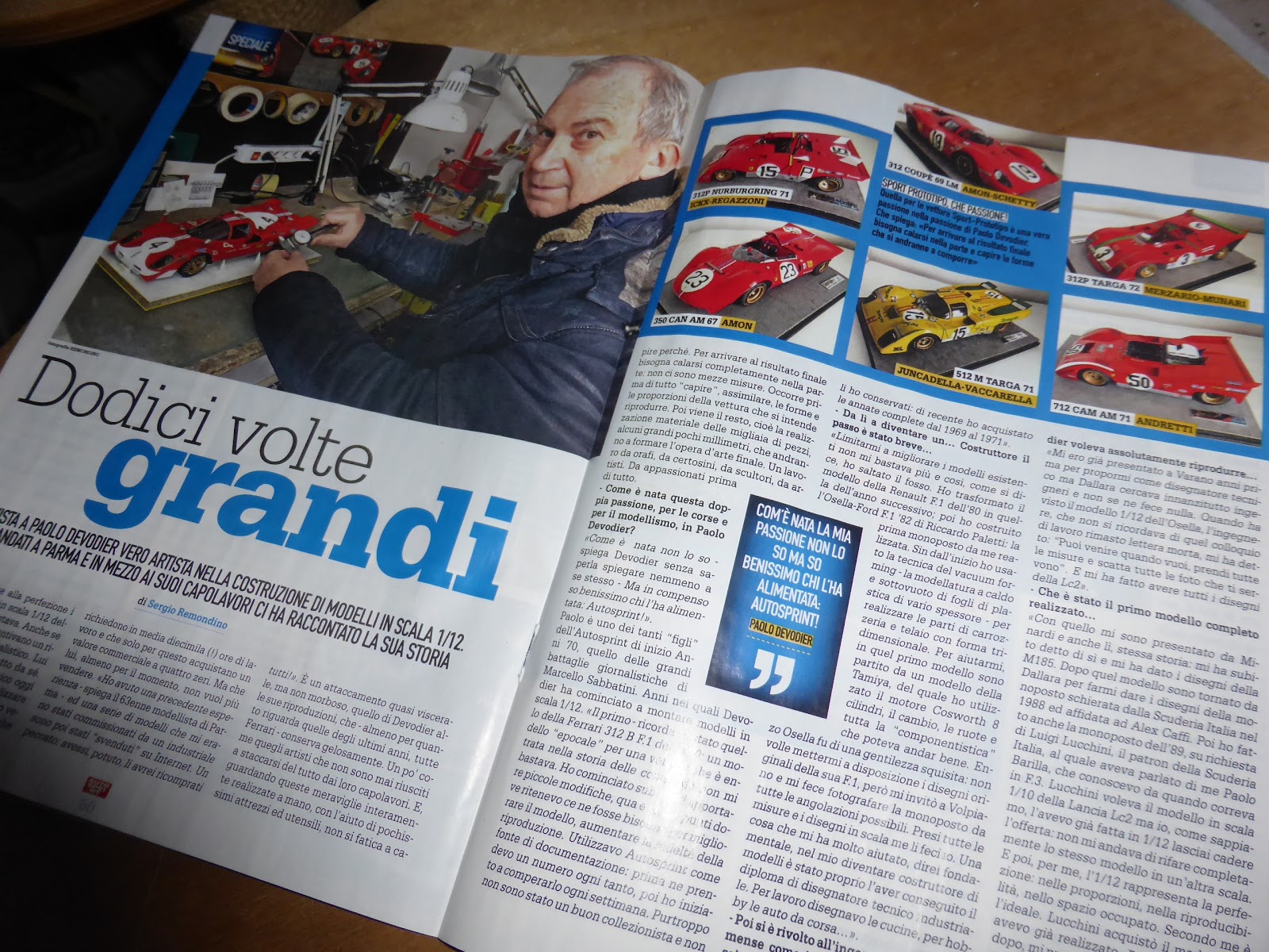 Fu negli anni ottanta e anche negli anni novanta che regolarmente apparvero su Autosprint sempre più novità di artigiani non solo italiani ma anche esteri, primi fra tutti i francesi di Provence Moulage, Starter, Automany, JPS e Mini Racing. Alla fine degli anni ottanta, la piccola rubrica di modellismo faceva parte del timone fisso di Autosprint, con Tameo e Meri Kits che presentavano le loro novità della Formula 1 contemporanea, Arena con le sue vetture da rally o anche Brumm con certi modelli promozionali che all\’epoca scatenavano le brame di collezionisti in crisi d\’informazione. Era ancora il periodo in cui un\’unica foto pubblicata su un settimanale veniva guardata, osservata e divorata infinite volte nell\’attesa della successiva. Tornando sulle magnifiche opere di Devodier, l\’intervista di quattro pagine rappresenta un giusto riconoscimento a migliaia di ore passate a rincorrere le forme delle più belle Ferrari sport-prototipo degli anni sessanta e settanta. Con la sola differenza che oggi, per chi voglia saperne di più, basta andare su Facebook e cercare il profilo del Nostro, parlando magari direttamente con lui…