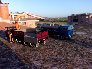 Riceviamo da Marco Feliziani di \’nonomologati\’ alcune belle foto di una composizione realizzata di recente, ispirata a un cantiere del passato. \”Mi piace sempre creare delle storie per ambientare adeguatamente i miei modelli\”, dice Marco. \”Storie verosimili, collegabili a fatti, vicende e mezzi coerenti per epoca. Il mio imprinting con i camion si è sviluppato a fine anni \’70 a Bibbiena (Arezzo), paese dei nonni materni dove ero solito trascorrere i mesi estivi per allontanarmi dal caldo e dall\’afa romana. Percorrendo la SS71 umbro-casentinese all\’altezza del piccolo centro abitato del Corsalone, si costeggiava il cementificio SACCI. Ricordo perfettamente i tanti mezzi parcheggiati sul piazzale sterrato oppure in fila alla pesa. Telonati per il trasporto di sacchi di cemento, svariati \”cipollati\”, rimorchi… Il mio viso si \”stampava\” sul finestrino posteriore della nostra Alfasud di famiglia. Una \”nuova\” 5 marce nel tipico colore \”verde matese\” con interni simil pelle marroncini… Con il tempo ho poi associato quelle immagini ai vari mezzi e la passione ha poi portato a…. \”nonomologati\”!