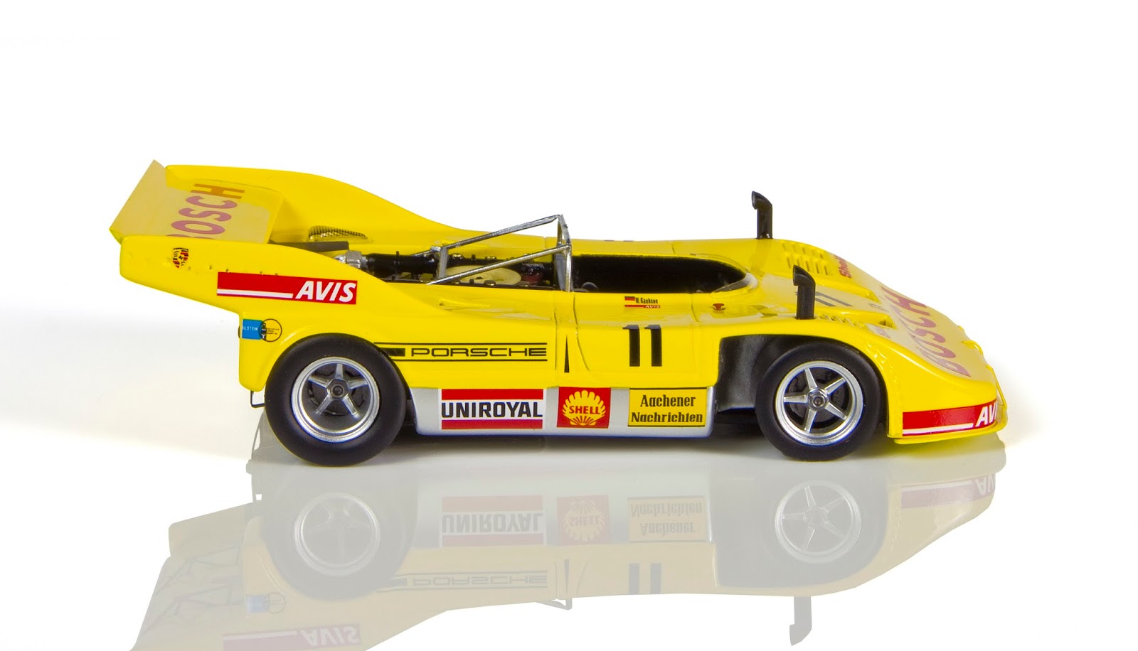 Le Porsche 917/10 gialle di Willi Kauhsen sono un\’icona dell\’automobilismo e fanno scattare la classica molla nel cuore dei collezionisti, almeno fin da quando Solido uscì col proprio modello quasi in contemporanea con le partecipazioni di Kauhsen nell\’Interserie. Da lì è stato tutto un susseguirsi di elaborazioni, più che altro su base Solido, e successivamente di modelli più o meno esclusivi, fino alle creazioni del Porsche Modell Club negli anni ottanta (su base Starter) e di Marsh Models in periodi più recenti. Neanche Spark è stata a guardare, e le piccole serie che ormai da anni caratterizzano il panorama \”sparkiano\” hanno contribuito a colmare le tante caselle lasciate vuote dai produttori del passato. E\’ il caso di Raceland, che esce proprio in questi giorni con una configurazione della vettura di Kauhsen (telaio 002, se i nostri dati sono esatti) utilizzata nell\’Interserie del 1972.