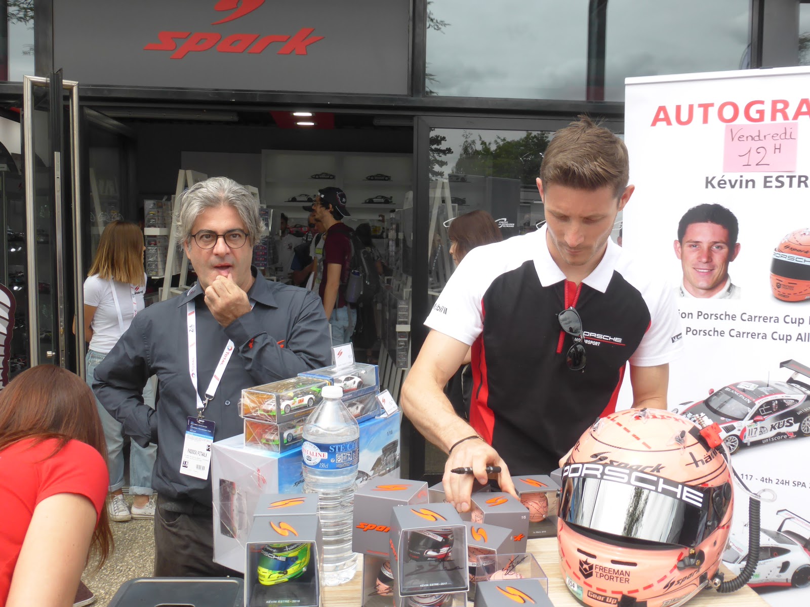 Non si può dire che le tecniche di marketing e di comunicazione di Spark non siano prive di capillarità e di efficacia. Oltre alla solita massiccia presenza e altre iniziative promozionali, il marchio leader dei modelli in resina ha organizzato a Le Mans alcune sessioni di autografi con i piloti ufficiali della Porsche. Associata a tutto questo, c\’è nel 2018 l\’intelligente operazione Pink Pig, che vede ovviamente coinvolta tutta una serie di articoli di merchandising. Kévin Estre ha partecipato ieri a un incontro col pubblico direttamente davanti alla boutique Spark nella piazza del villaggio dietro al paddock. In questo weekend di gara, Estre utilizzerà un casco con gli stessi colori della vettura, già disponibile come modello in scala 1:5 presso i punti vendita di Spark. Quando il tempismo è tutto…