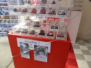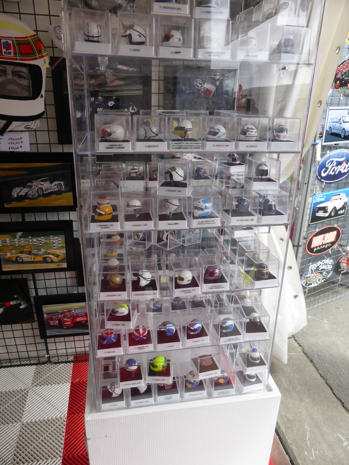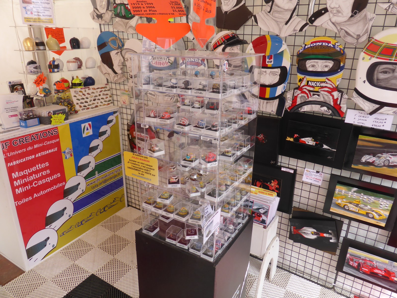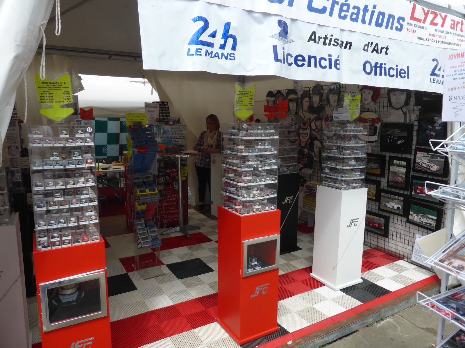 Del poco di artigianale che è rimasto a Le Mans, i caschi in scala 1:12 di JF Créations-Lyzy Art rappresentano un bel legame col passato. Questa piccola ditta di Savigny Levescault (dipartimento della Vienne, Nuova Aquitania) da più di trent\’anni fa dell\’originalità e della creatività uno dei suoi punti forti. A Le Mans è sempre presente col proprio stand, in cui i vari caschi occupano la maggior parte dello spazio. Si tratta di riproduzioni molto fedeli, e ormai il catalogo è vastissimo, comprendendo oltretutto varie versioni per ogni pilota, in base all\’anno, alla gara o allo sponsor.
