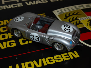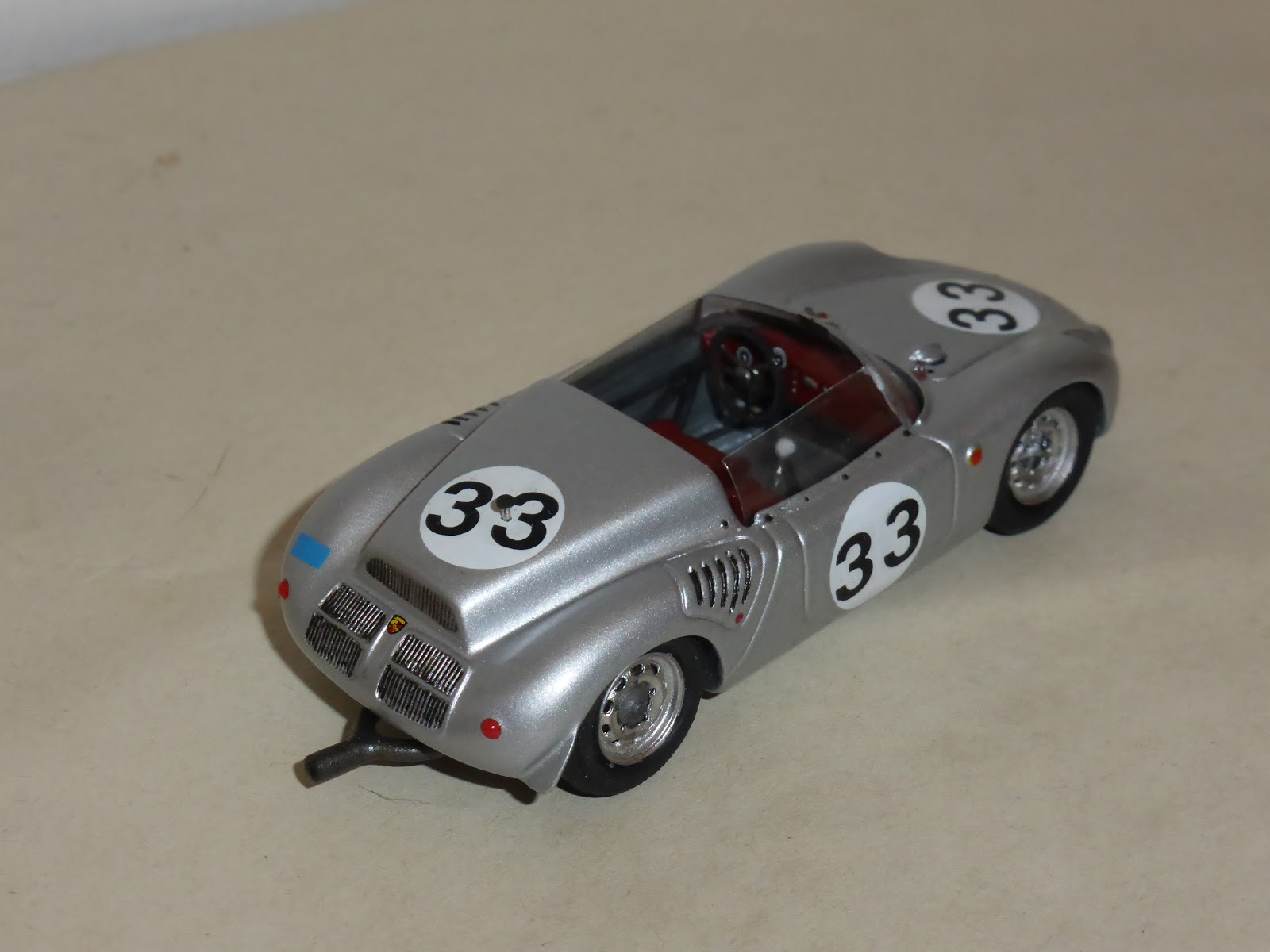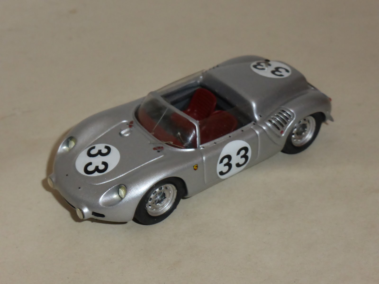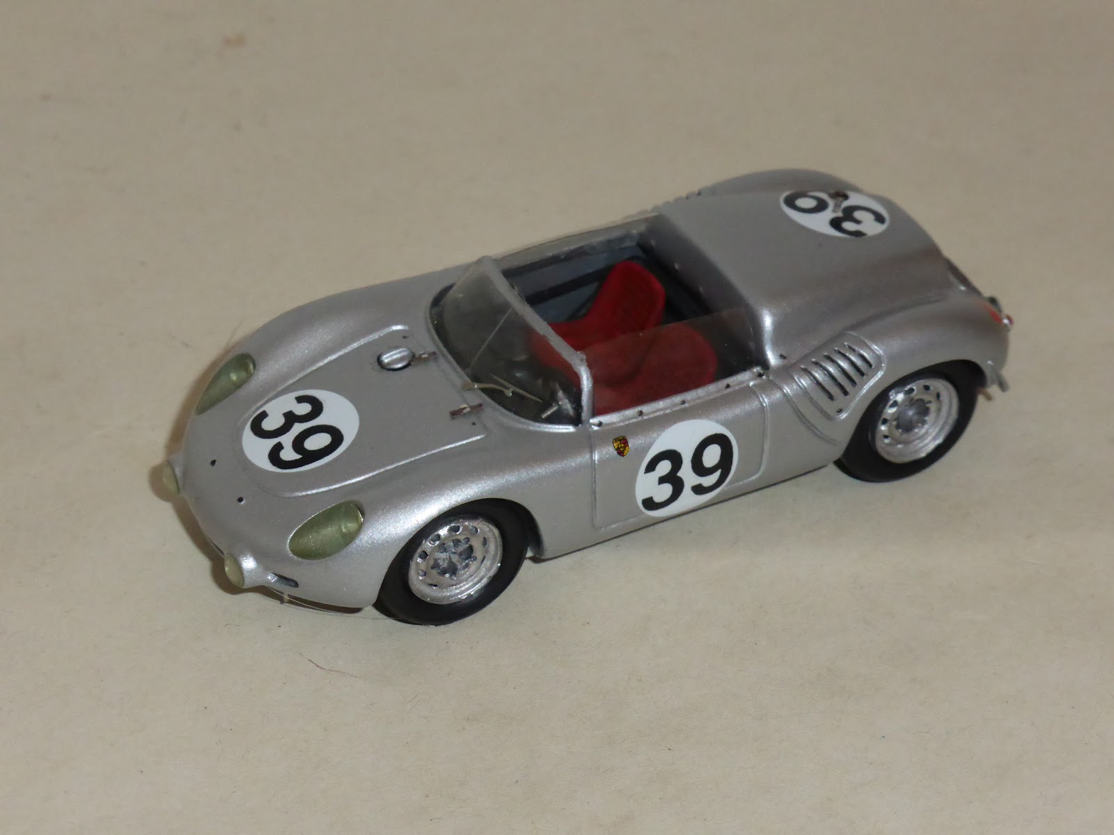 Si trattava di un classico prodotto dell\’epoca: parti in resina – stampate dalla Gamma di Roma – con pochi particolari in fotoincisione, ma una finitura molto accurata e un montaggio di livello adeguato. I numeri di gara neri erano ricavati dai classici foglietti Letraset che si trovavano ancora in ogni negozio di accessori per l\’architettura. Molto bella e precisa la vetratura in termoformato e curiosamente il modello era sprovvisto delle coperture dei fari. Fu Paolo Tron a smaltire l\’intera produzione, che godette di un buon successo. Le linee del modello erano corrette e il soggetto poteva essere un\’aggiunta originale a ogni collezione di Porsche e di vetture di Le Mans. Di questa RS60 uscì una sola versione, anche se qualche tempo fa sul sito di Carmodel si è vista la numero 39 di Le Mans dello stesso anno (Edgar Barth / Wolfgang Seidel). Un mezzo mistero, probabilmente un\’elaborazione fatta in un secondo momento da qualche collezionista, ma la certezza assoluta non c\’è.