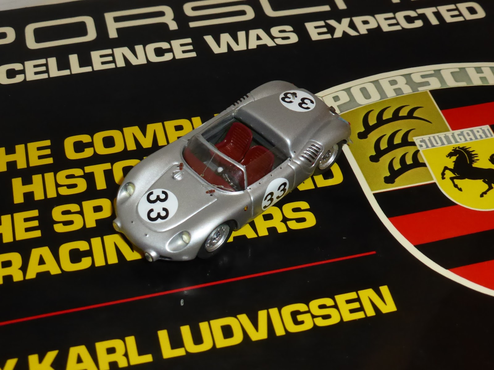 | La Porsche 718 RS60 di F&M Car fotografata sul libro che in quegli anni tutti i collezionisti Porsche dovevano avere, \”Porsche Excellence was expected\” di Karl Ludvigsen, che era uscito nel 1977. |