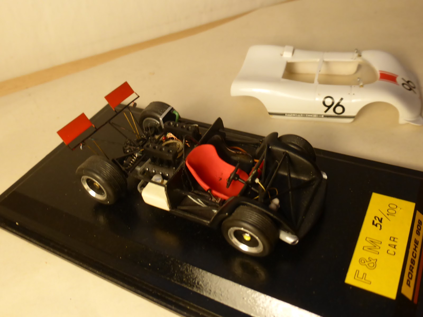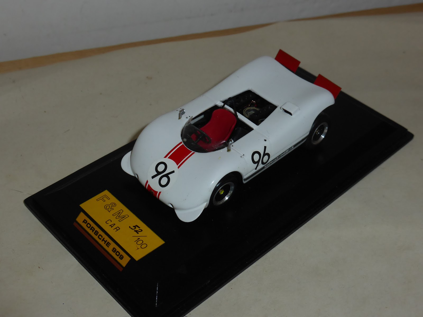 Qui a Firenze un esemplare restò esposto per un certo periodo di tempo nel negozio di Luciano Rocchi in Via Vittorio Emanuele II, tradizionale luogo di ritrovo per gli anarchici e fondamentalmente indipendenti appassionati fiorentini. La Porsche 909 di F&M Car, prodotta in una cinquantina di esemplari, rappresenta un altro pezzetto di storia dell\’artigianato automodellistico, che a Firenze e dintorni dette vita a diversi marchi oggi del tutto scomparsi. Alcuni ne restano – e sono noti – ma altri ancora come Future Models oppure Andrea Cioni o RossoCorsa. Nomi non sempre legati a vicende dai risvolti allegri, ma che varrebbe la pena approfondire un giorno, pur con le limitazioni imposte dalla necessaria sensibilità.