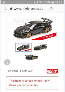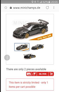 | \”Only few left\”: dopo una mezza mattinata e un pomeriggio erano solo un paio le 911 verdi rimaste disponibili sul sito Minichamps. |